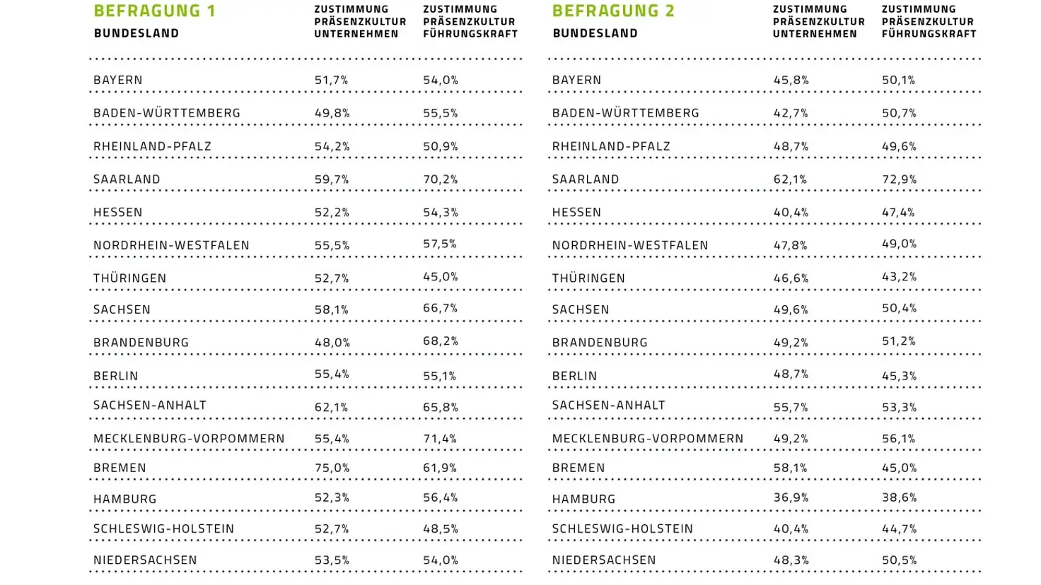 Infografik: Zustimmung zur Präsenzkultur in verschiedenen Bundesländern
