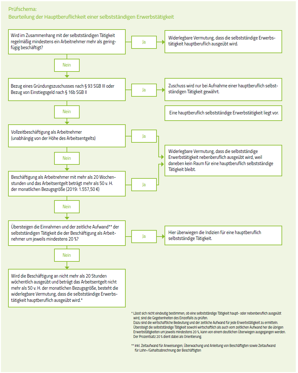 Hinweis: Dieses Bild/ Prüfschema zur Beurteilung der Hauptberuflichkeit einer selbstständigen Erwerbstätigkeit ist nicht barrierefrei.