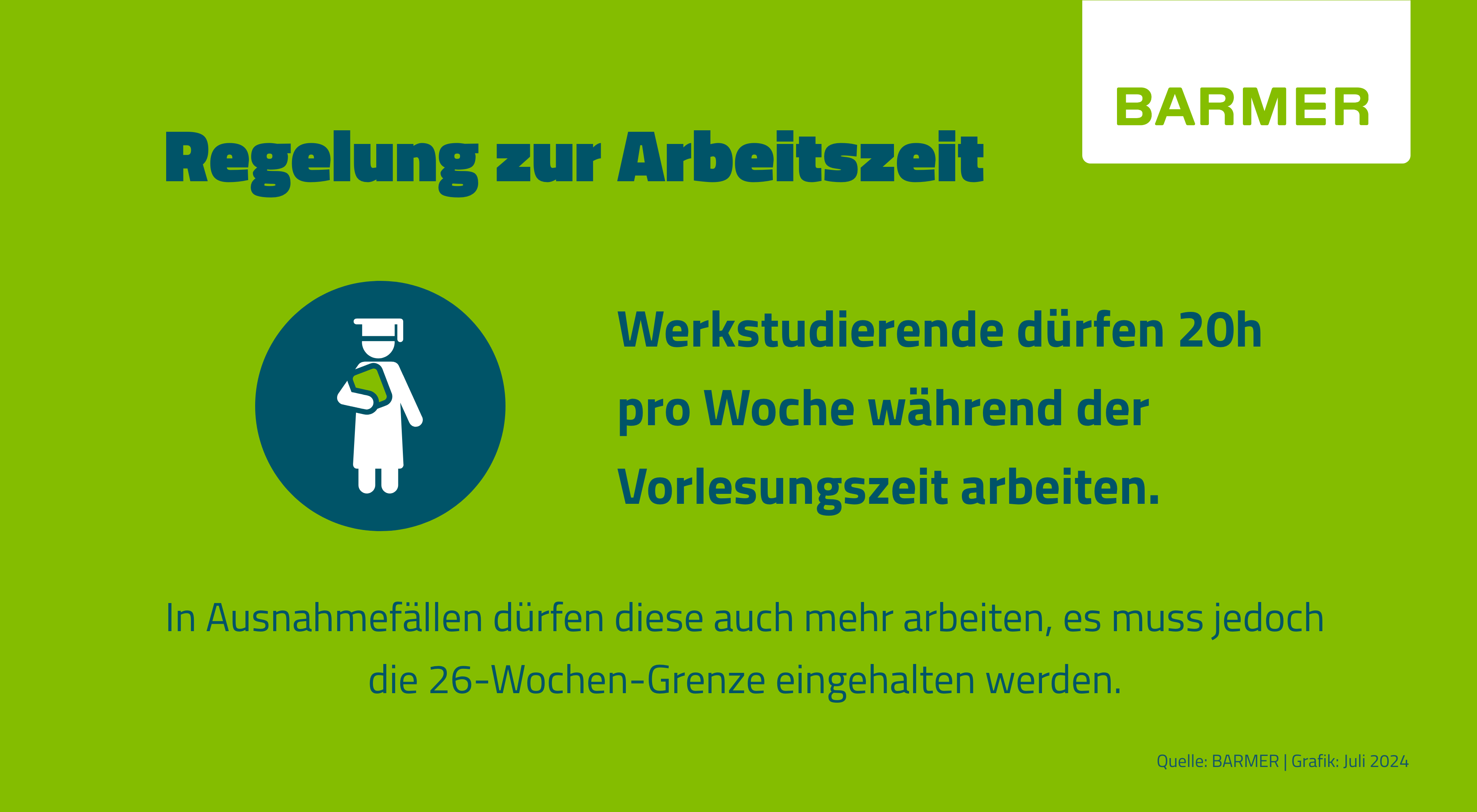 Neben dem Studentenstatus spielt die Arbeitszeit eine wichtige Rolle. Damit das Studium weiterhin im Mittelpunkt steht, dürfen Studierende während der Vorlesungszeit nicht mehr als 20 Stunden in der Woche arbeiten.