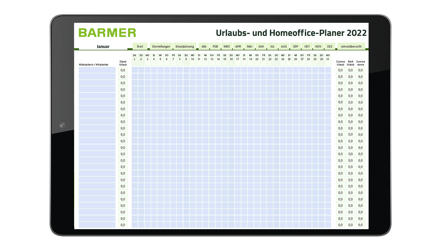 Mit dem Urlaubs- und Homeoffice-Planer behalten Sie die An- und Abwesenheiten Ihres Teams immer im Blick und können Präsenztage, mobile Arbeit und Urlaube unkompliziert verwalten.