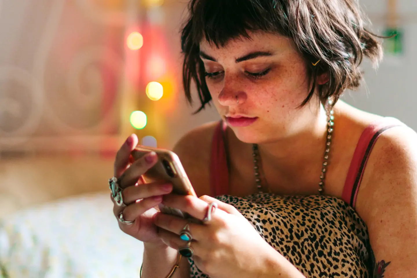 junge Frau informiert sich über ihr Smartphone im BARMER Newsletter