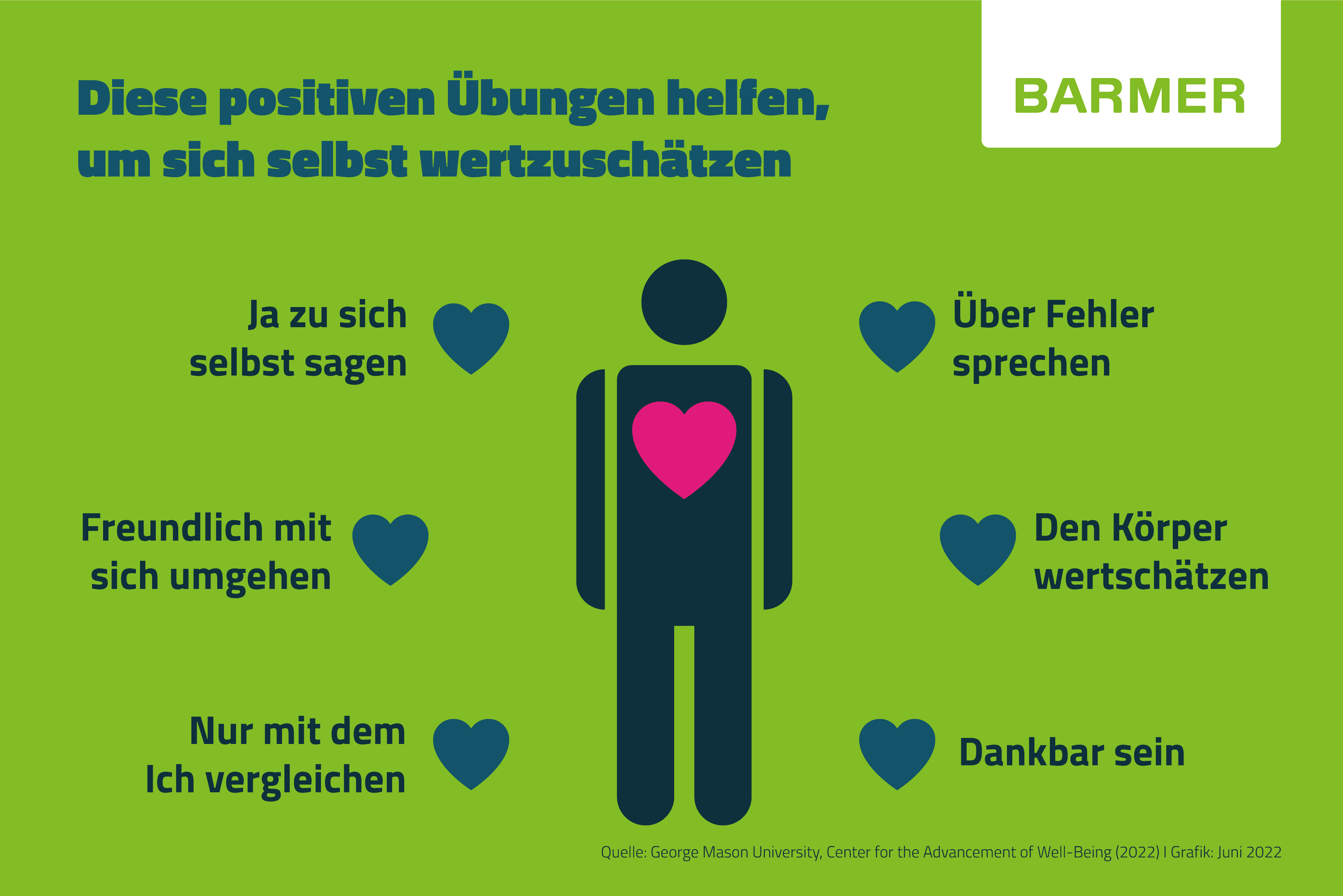 Mit Selbstliebe hat das alles nichts zu tun. Stattdessen profitieren wir sehr davon, wenn wir uns genauso mögen und akzeptieren, wie wir sind. Neben dem Selbstwert (Wie bewerte ich mich, wie schätze ich mich ein, welche Anerkennung bekomme ich von außen?) ist dabei vor allem das Selbstmitgefühl entscheidend (Wie wohlwollend gehen wir mit uns um, gerade wenn es mal nicht so gut läuft?).