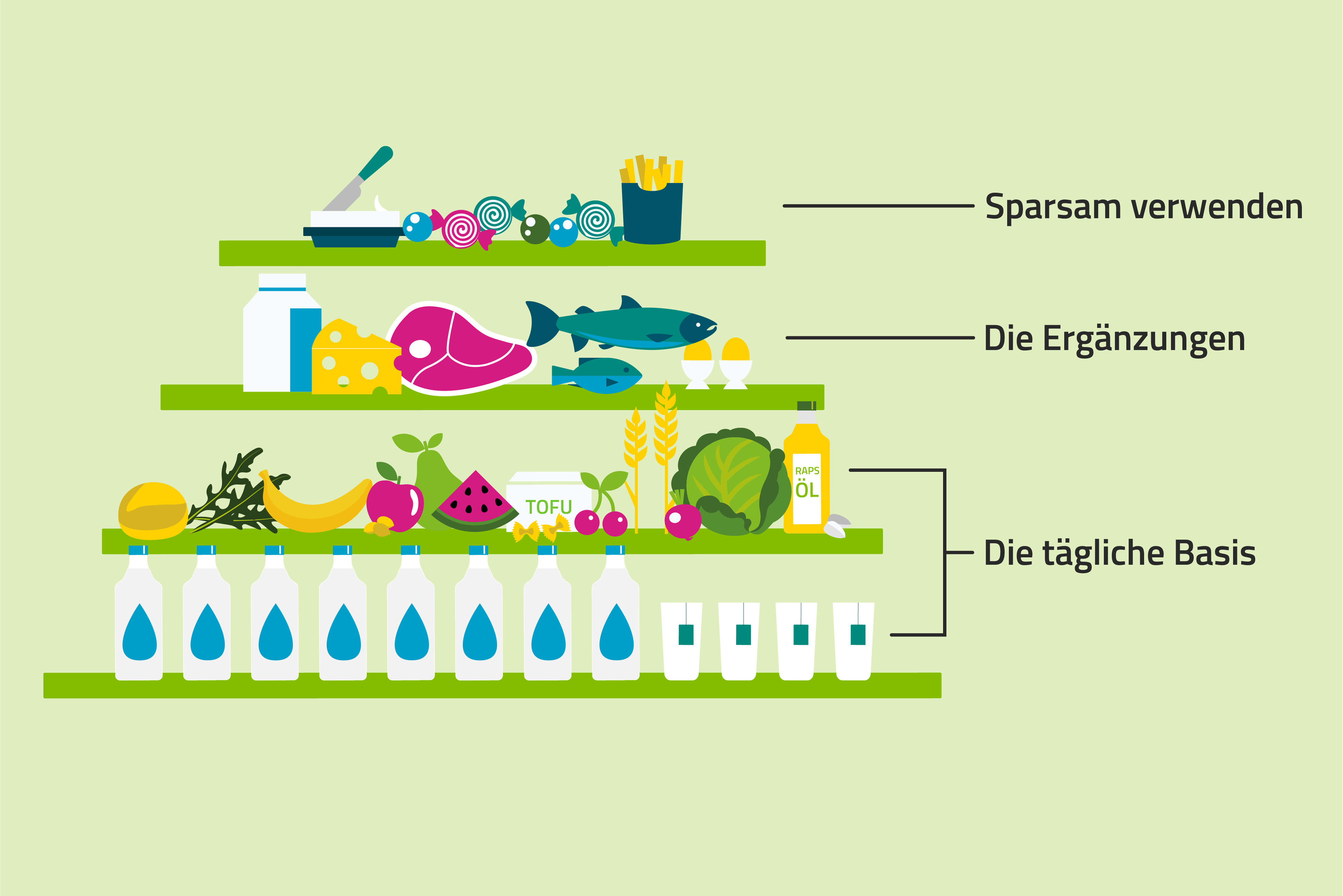 Tierische Lebensmittel: Milch und Milchprodukte 150 Gramm pro Tag, Fleisch und Wurstwaren 300 bis 600 Gramm in der Woche, beides am besten in der fettarmen Variante
