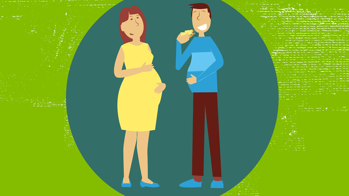 Tatsächlich kann eine Schwangerschaft die Produktion weiblicher Hormone beim Mann ankurbeln. Während der Hormonspiegel für das Sexualhormon Östrogen steigt, sinkt der Testosteronwert. Mögliche positive Auswirkung: ein entspannter, fürsorglicher Vater. Möglicher Haken: Mancher Mann entwickelt mit Heißhunger oder Übelkeit ähnliche Symptome wie die schwangere Frau. Dafür gibt es sogar einen Namen: Couvade-Syndrom.
