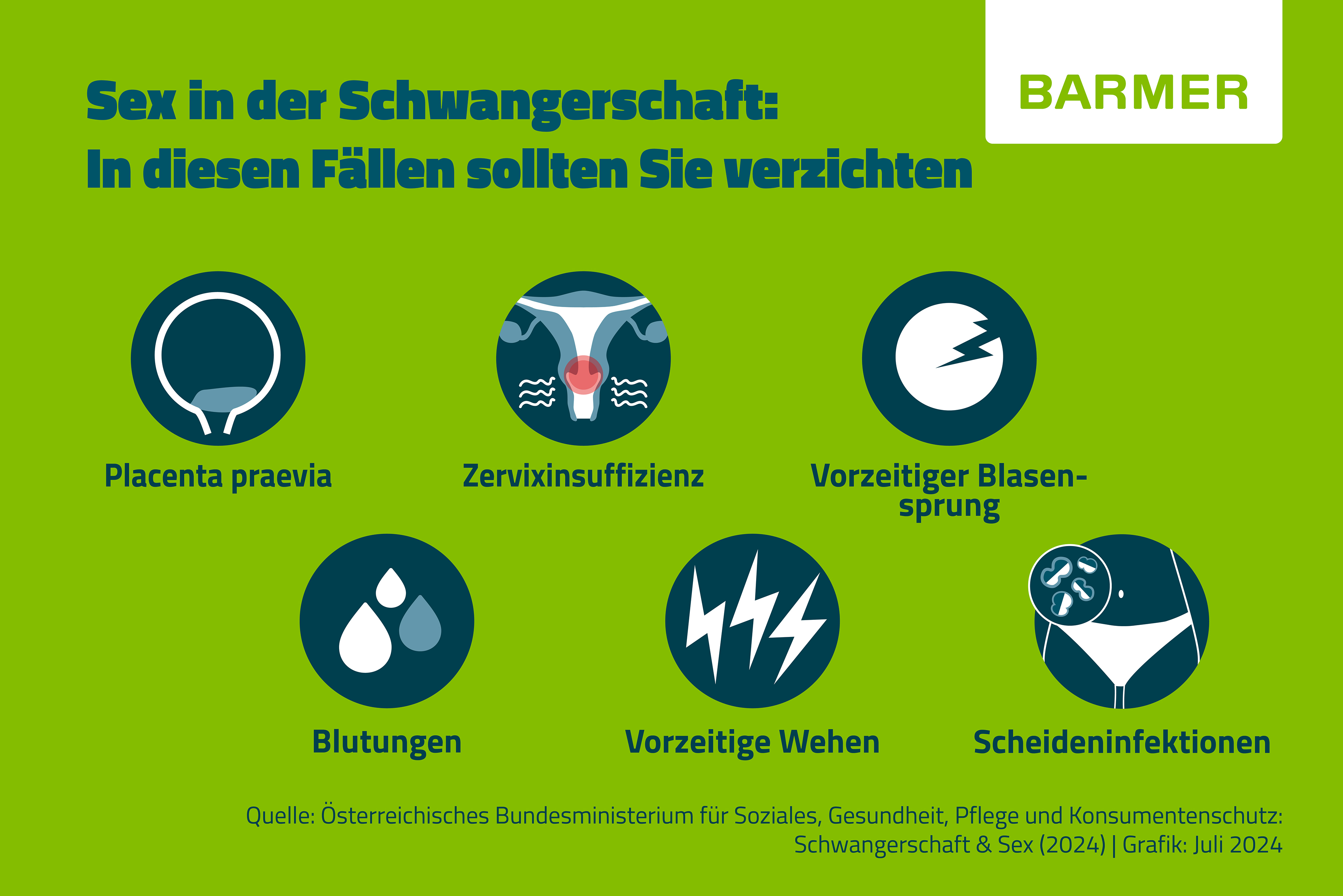 Es gibt einige Fälle, die (manchmal nur zeitweise) gegen Geschlechtsverkehr in der Schwangerschaft sprechen. Dazu zählen: