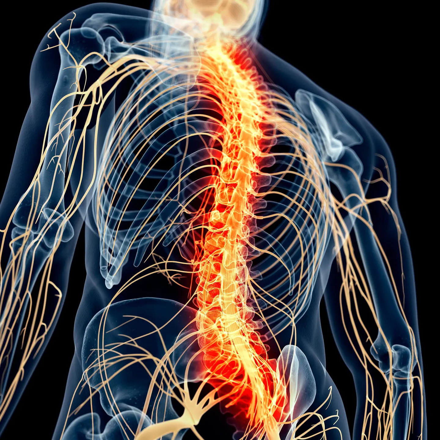 Die Anatomie der Wirbelsäule ist ein Geniestreich der Evolution, der uns eine einzigartige Fähigkeit unter allen Lebewesen ermöglicht: den aufrechten Gang. Unser Rücken trägt all unsere Last, ist beweglich und trotzdem stabil. Die wichtigste Stütze des Rückens ist die Wirbelsäule. Sie verbindet Kopf, Brustkorb, Becken, Schultern sowie Arme und Beine. Im Wirbelkanal schützt die Wirbelsäule das Rückenmark, die Verbindung zwischen der Schaltzentrale, dem Gehirn, und dem Körper. Werfen Sie mit uns einen Blick auf die Nervenbahnen im Rücken und die Muskeln der Wirbelsäule.