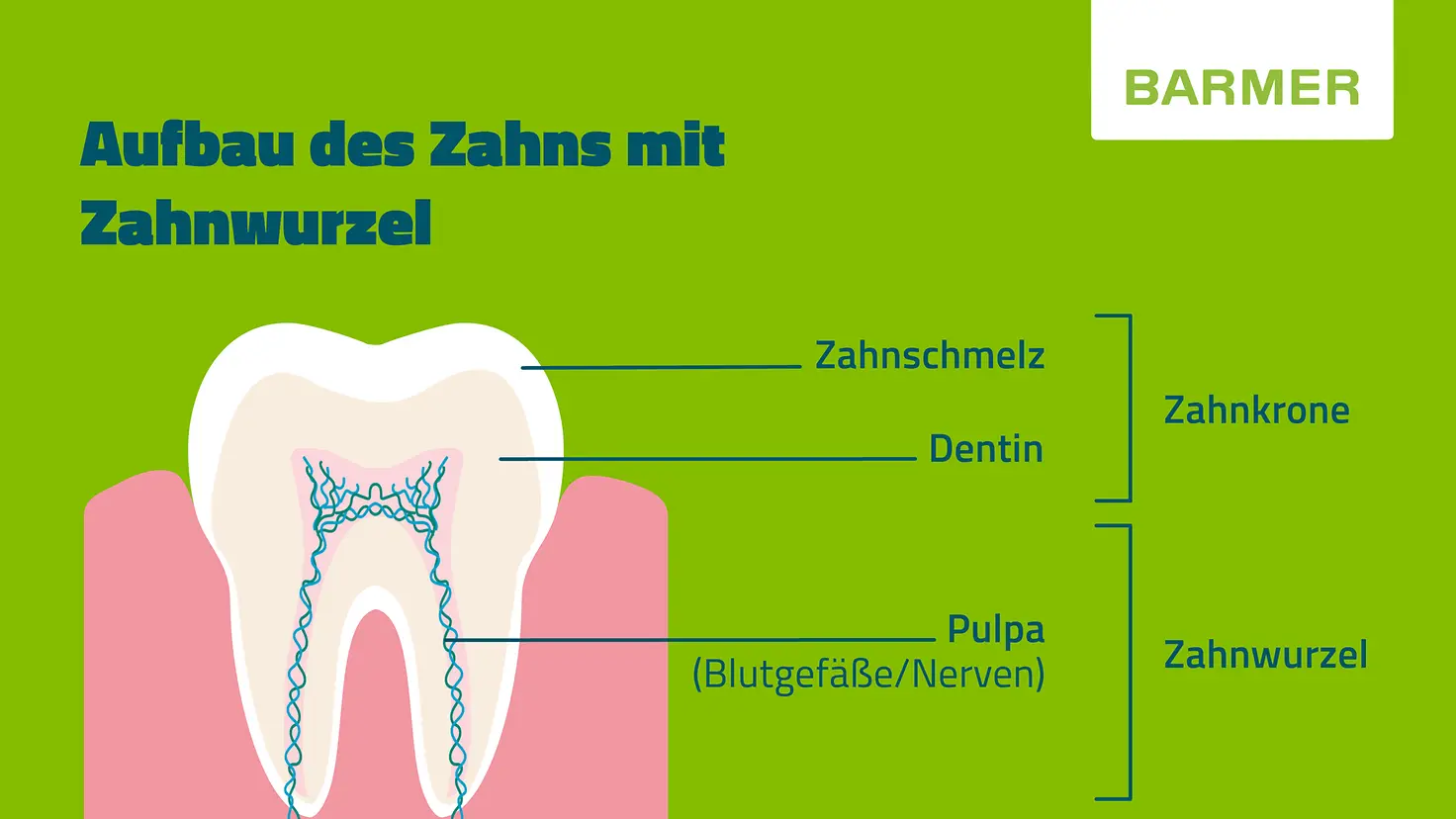 Infografik: Aufbau des Zahns mit Zahnwurzel