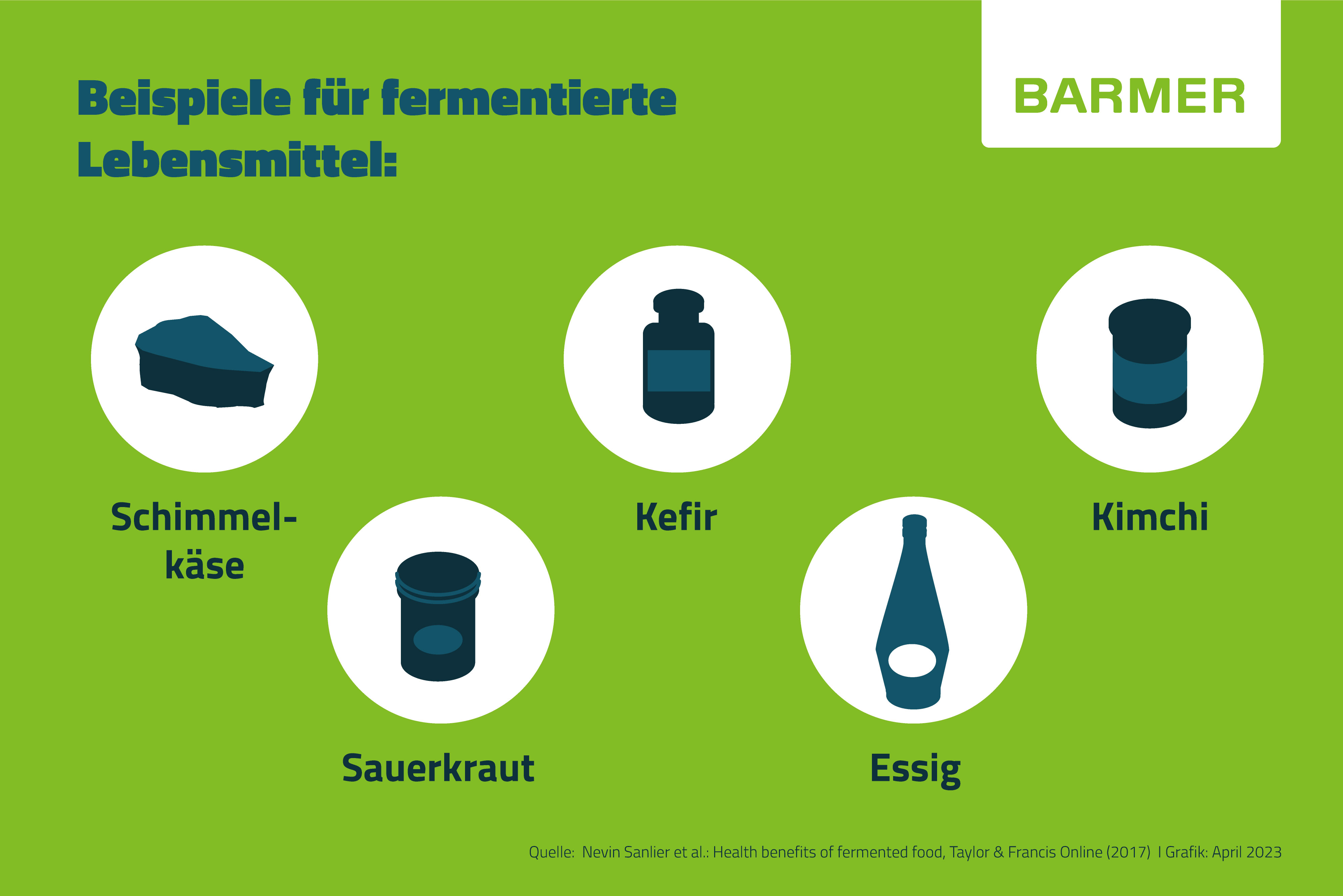Hefefermente wandeln die Kohlenhydrate der Lebensmittel in Alkohol um – das kennt man zum Beispiel aus der Herstellung von Bier. Dabei lässt der natürlich im gemälzten Getreide vorkommende Zucker aus den Hefen Bier entstehen. Bakterien namens Lactobacillus verwandeln Weißkohl in Sauerkraut (ein echtes heimisches Superfood). Beim Joghurt arbeitet zudem noch die Bakterienart Streptococcus thermophilus mit und wandelt die Lactose in Milchsäure um. Lactobacillus-Bakterien machen gemeinsame Sache mit der Hefe und aus dem Mehl wird Sauerteig. Kefirkörner enthalten viele unterschiedliche Bakterien und Hefen, sie sind verantwortlich für den Kefir. Der Kombuchapilz zaubert aus Tee und Zucker das erfrischende, fermentierte Getränk. Und schließlich sind da noch die Schimmelfermente, wie Penicillium, die den Blauschimmelkäse entstehen lassen.