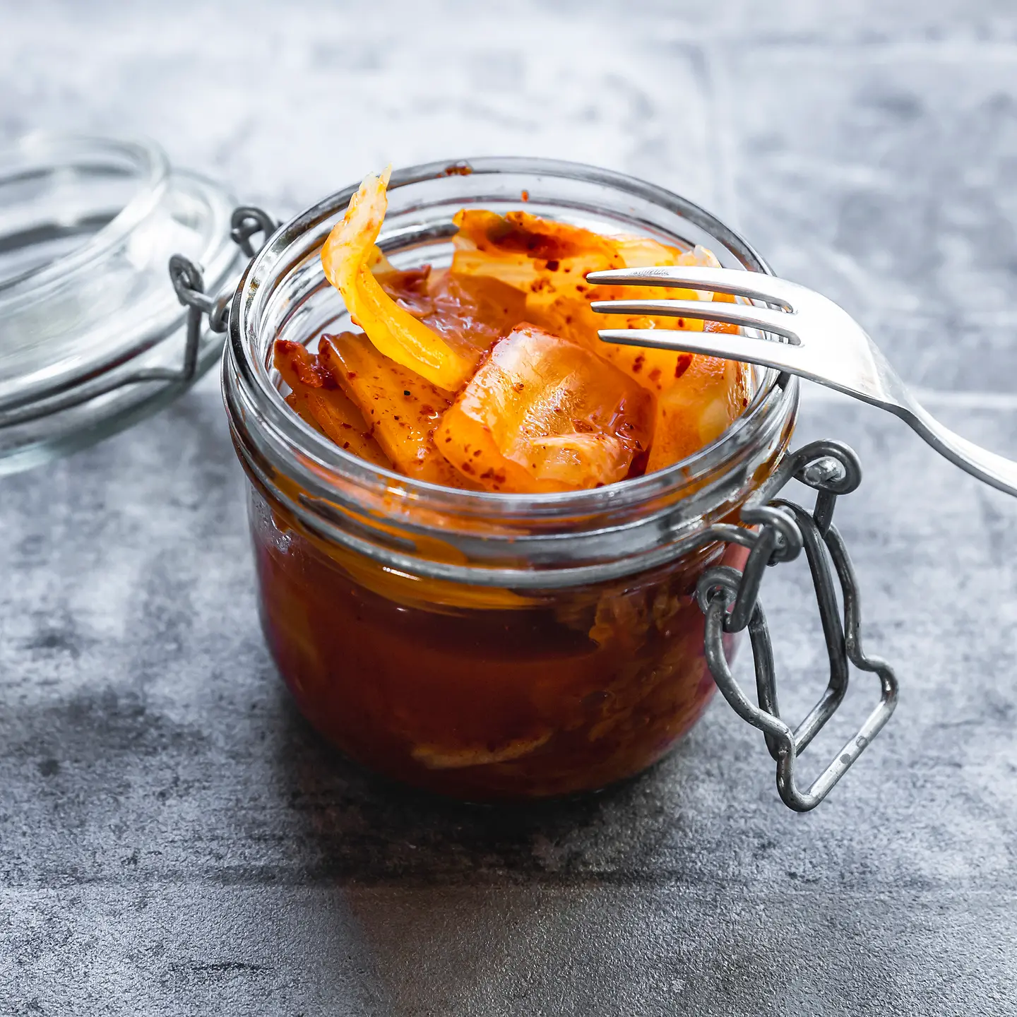 Außerdem müssen die Gläser gut abdichten, ideal ist deshalb ein Schraub- oder Bügelverschluss. „Wir empfehlen die Variante mit Bügelverschluss, da sie die bei der Fermentation entstehenden, überschüssigen Gase entweichen lässt, aber keine fremden Stoffe ins Glas hineinlässt.“ Glasgewichte, die es in verschiedenen Größen gibt, oder Untertassen beschweren das Gemüse und Obst, sodass es unter Wasser bleibt. Denn was herausragt, beginnt zu schimmeln.