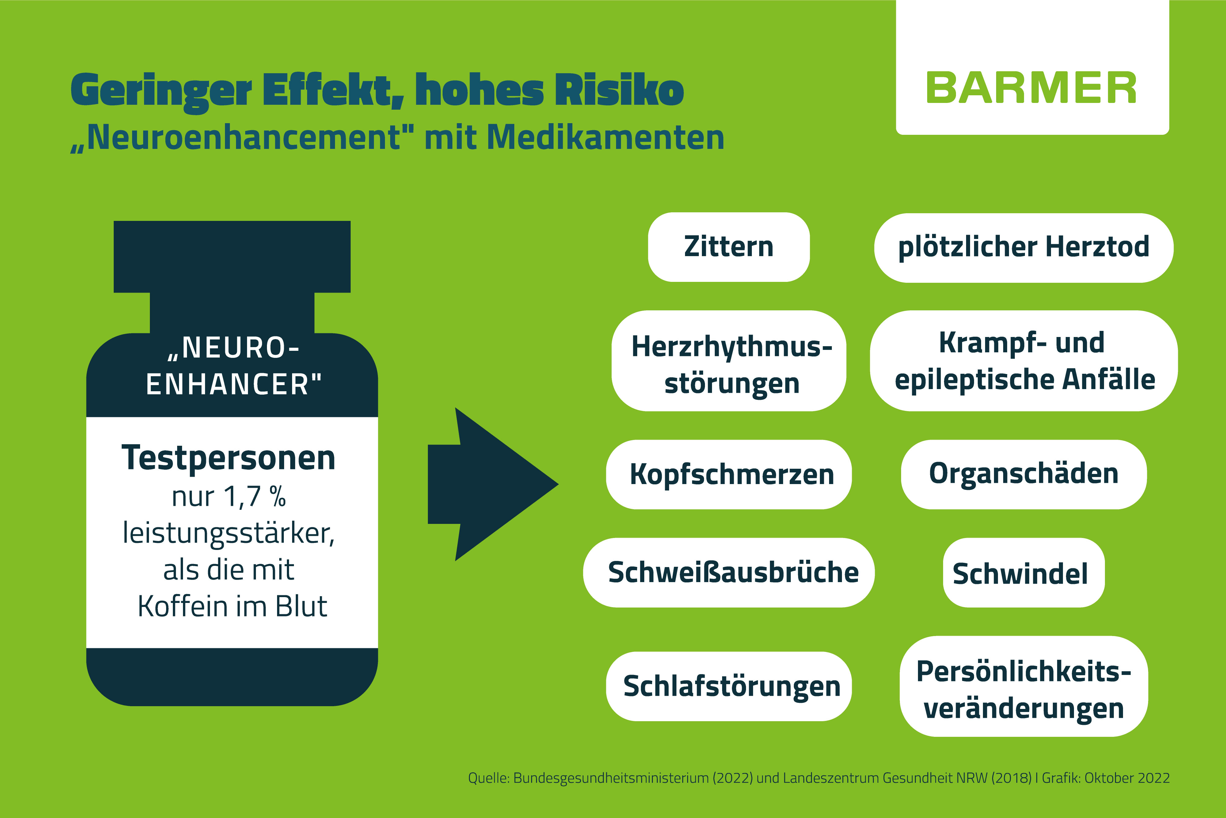 Patienten und Patientinnen mit entsprechender Diagnose helfen beide Wirkstoffgruppen nachweislich, was aber bewirken sie bei gesunden Menschen? Die Studienlage dazu ist insgesamt eher dünn. Was sich aber sagen lässt: „Die Mittel können zwar tatsächlich einen leistungssteigernden Effekt haben, doch geht die Einnahme mit gesundheitlichen Risiken einher“, warnt Mediziner Nelles.