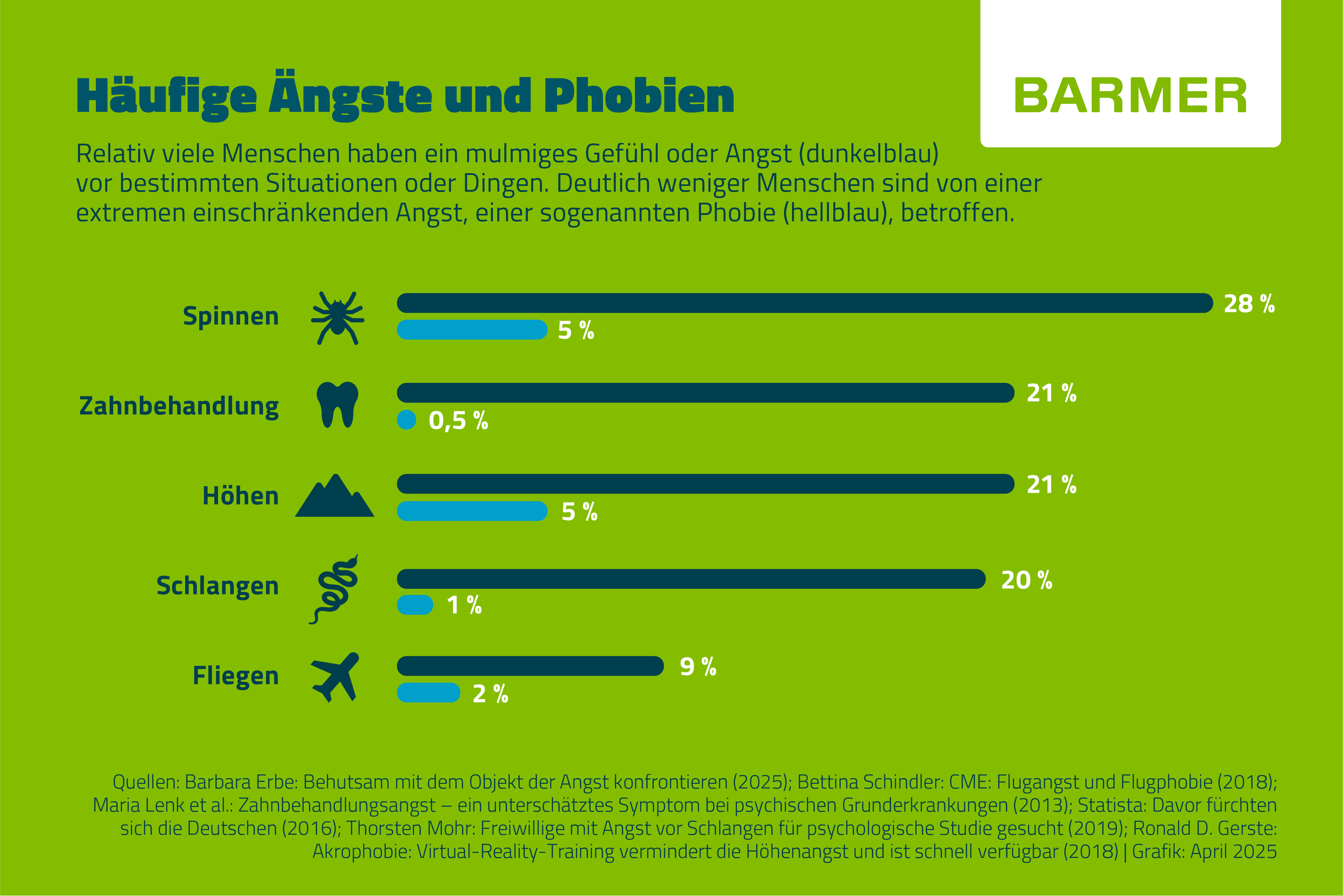 Ängste sind eine ganz natürliche Reaktion auf potentiell bedrohliche Situationen und treten häufig auf. Phobien, also starke, irrationale Angstgefühle, die das Leben stark einschränken können, sind deutlich seltener.