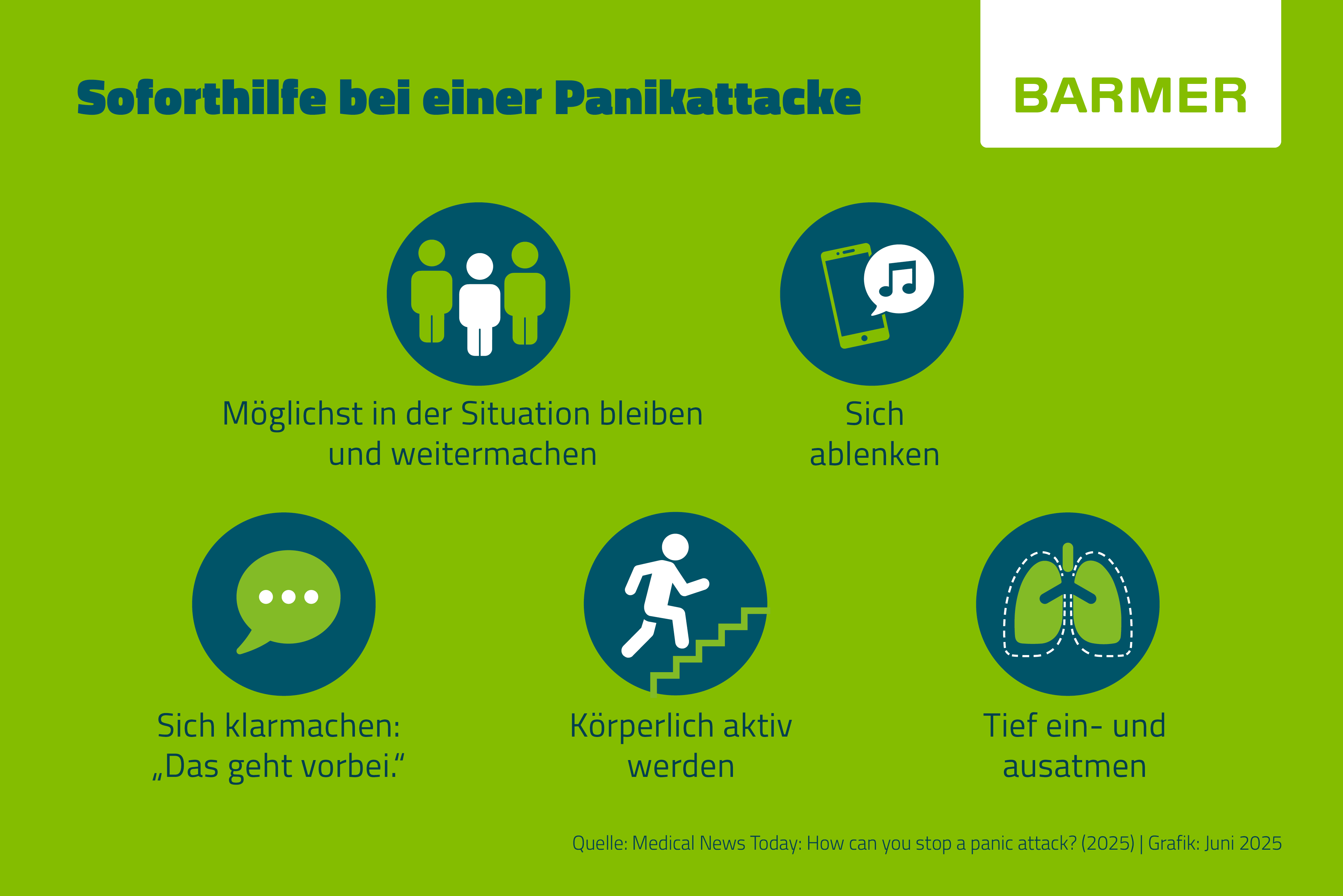 Wichtig zu wissen: Wenn Medikamente zur langfristigen Behandlung von Panikattacken eingesetzt werden, wirken sie in der Regel nicht sofort. Meist dauert es ein bis zwei Wochen, in manchen Fällen bis zu sechs Wochen, bis eine spürbare Besserung eintritt. Daher ist es wichtig, die Medikamente nicht einfach abzusetzen, falls sich die Wirkung noch nicht gezeigt hat, sondern geduldig zu bleiben. Zu Beginn der Einnahme können vorübergehend Nebenwirkungen wie Unruhe, Schlafprobleme oder Übelkeit auftreten. Solche Begleiterscheinungen klingen bei vielen Betroffenen nach einiger Zeit wieder ab. Möchten Sie die Medikamente absetzen, sollten Sie sie nicht abrupt weglassen, sondern langsam ausschleichen – immer in Absprache mit der behandelnden Ärztin oder dem behandelnden Arzt.