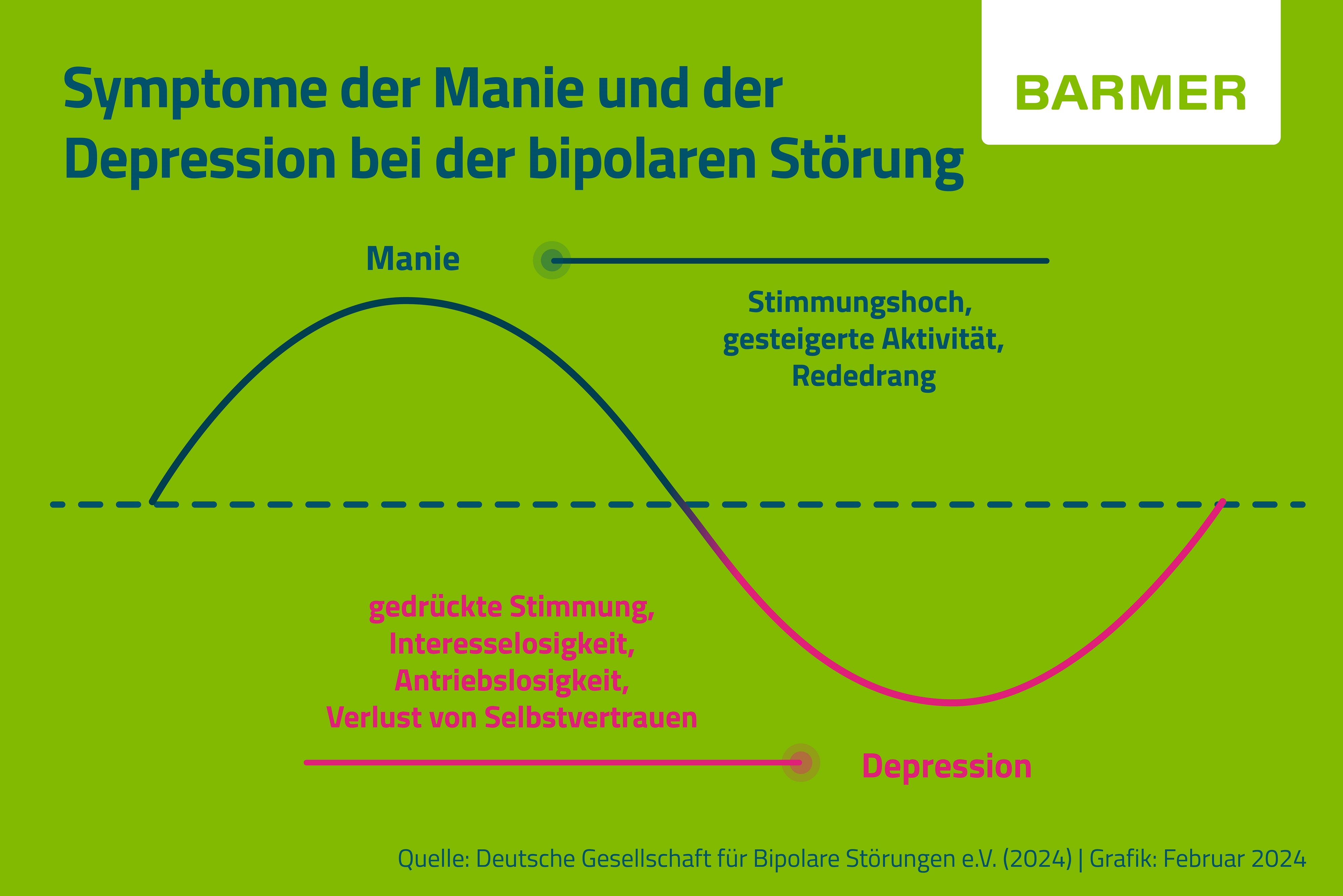 Manische Depression, bipolare Depression oder manisch-depressiv: Es gibt verschiedene umgangssprachliche Bezeichnungen für die bipolare Störung. Gekennzeichnet ist die psychische Erkrankung von einem Wechsel aus depressiven sowie manischen oder hypomanischen Episoden. Als hypomanisch werden Phasen mit denselben Symptomen wie in den manischen Episoden bezeichnet, die aber schwächer ausgeprägt sind und von depressiven Schüben unterbrochen werden können.