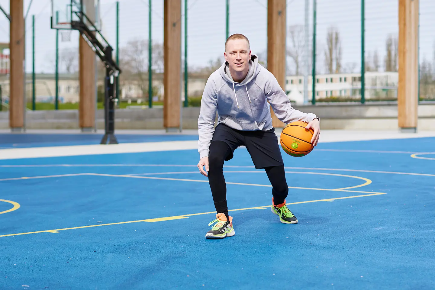 Auf der anderen Seite finde ich es beim Basketball toll, dass ich auch einfach alleine spielen kann. Man schnappt sich den Ball und kann Körbe-werfen und das macht auch einfach sehr viel Spaß.