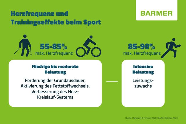 Da Sauerstoffaufnahme und Herzfrequenz aber linear zusammenhängen und die Herzfrequenz leichter zu messen ist, wird sie häufig als Kontrollgröße für die sportliche Belastung herangezogen. Je nach Studie gibt es etwas unterschiedliche Angaben dazu, bei welchem Puls man am meisten Fett verbrennt. Als Richtwert gelten 55 bis 85 Prozent der maximalen Herzfrequenz, also ein niedriger bis moderater Intensitätsbereich.