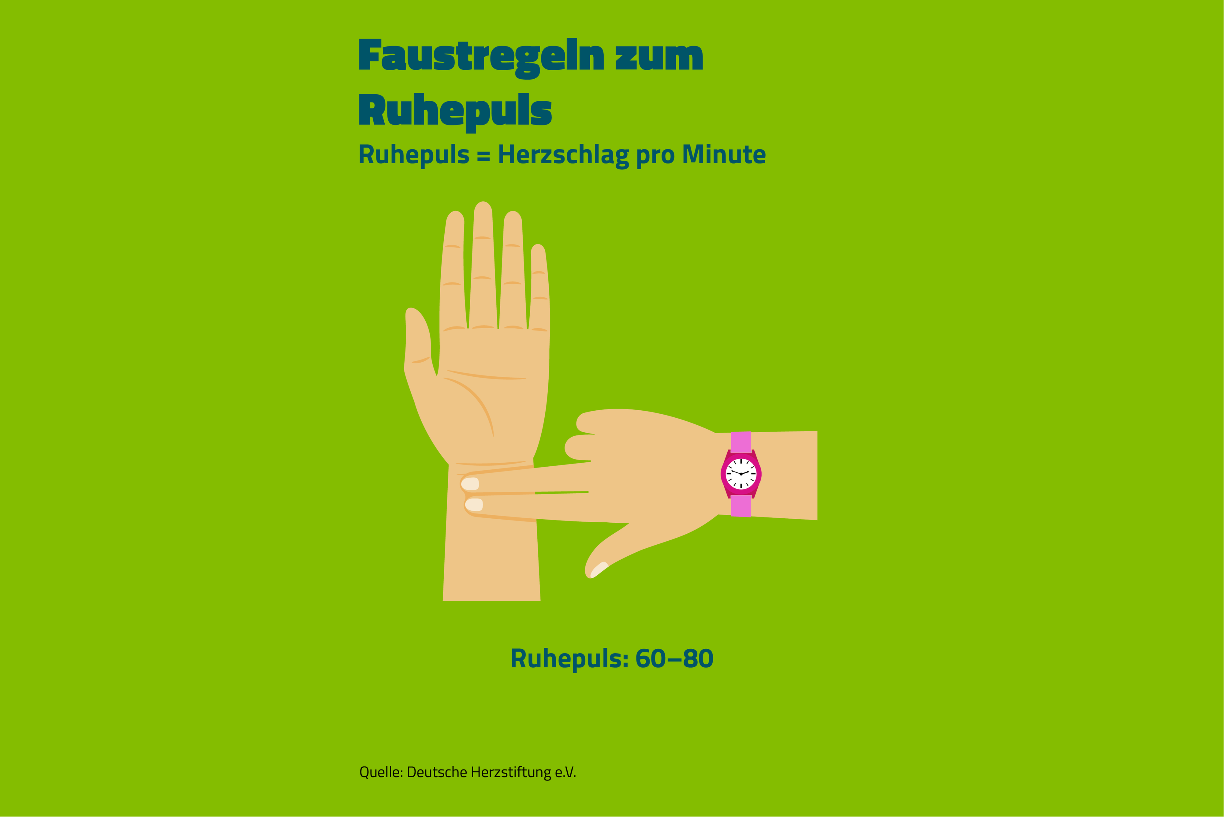 Bei Erwachsenen liegt der Puls in Ruhe bei etwa 60 bis 80 Schlägen pro Minute.