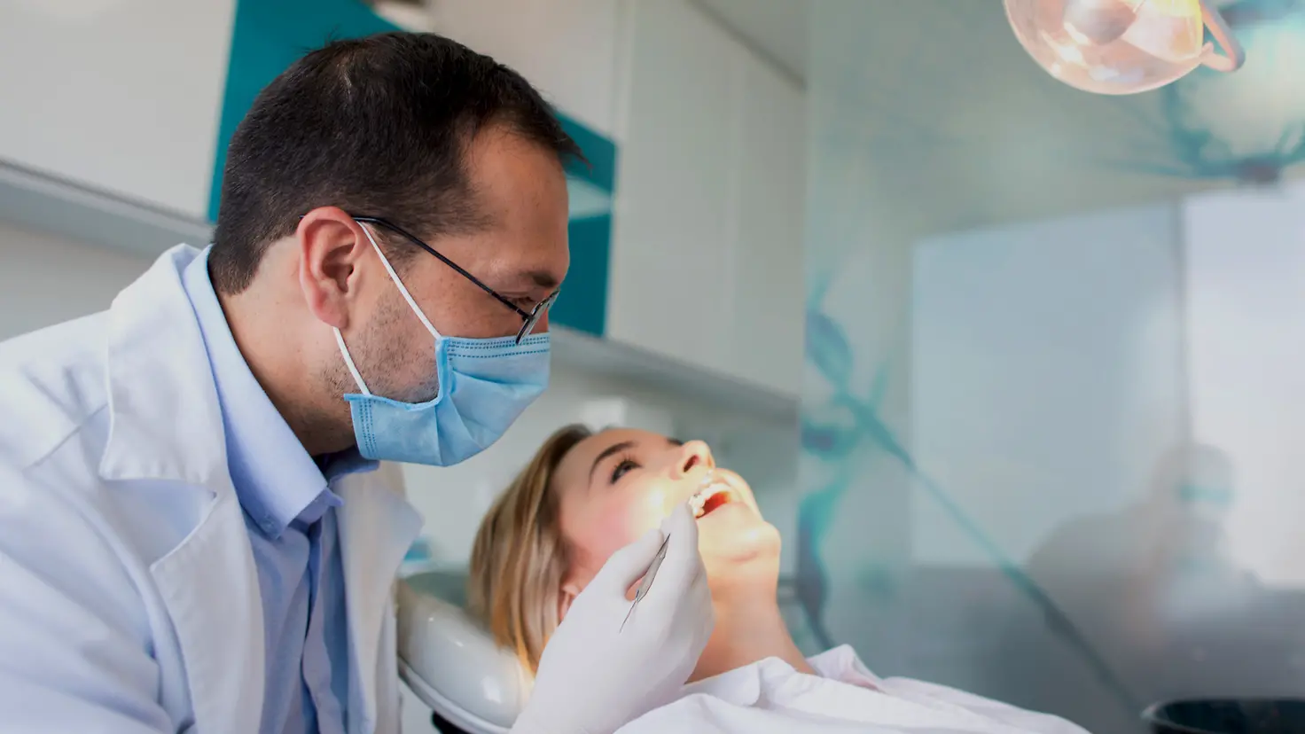 Mithilfe einer Sonde untersucht der Zahnarzt oder die Zahnärztin die Zähne und Zahnzwischenräume auf Karies.