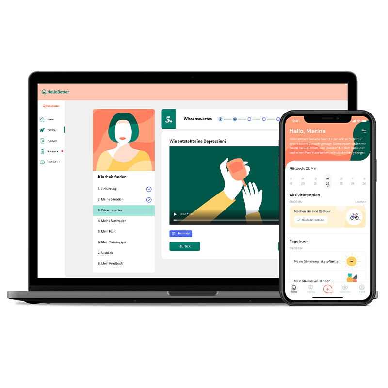 Das HelloBetter Online-Training fokussiert sich darauf, depressive Beschwerden und emotionale Belastungen in Zusammenhang mit Diabetes zu verringern. Die wirksamen und abwechslungsreichen Methoden im Training unterstützen Sie auf Ihrem Weg zu mehr Wohlbefinden.