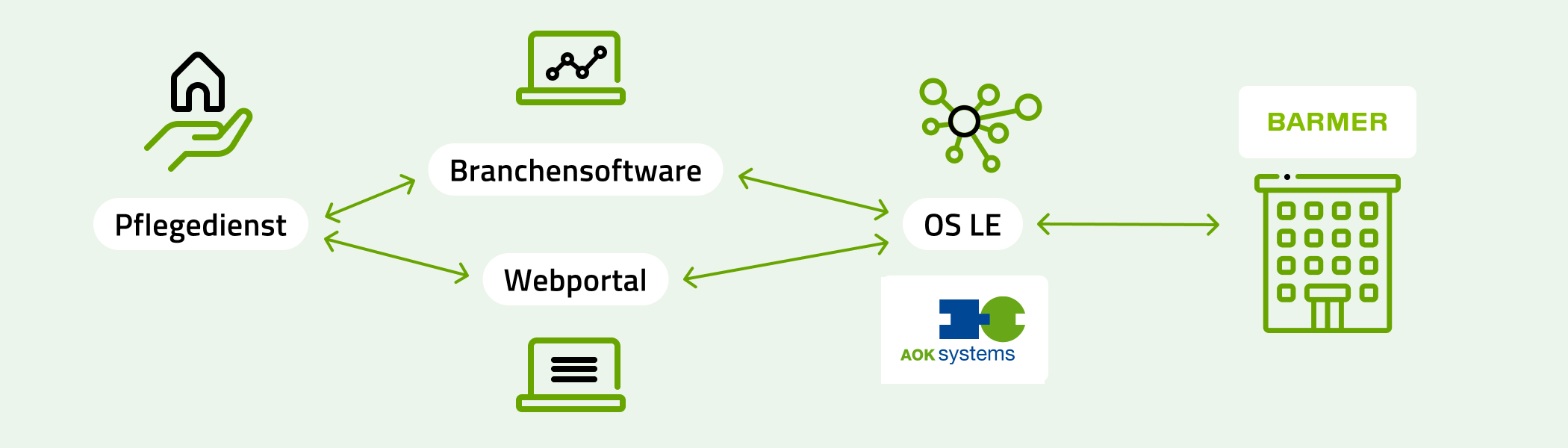 Der Zugang zum Online Service Leistungserbringer (OS LE) ist für alle Pflegedienste oder deren IT-Dienstleister offen. Diese technische Schnittstelle wird von unserem IT-Partner AOK Systems bereitgestellt und ist Bestandteil der GKV-Branchenlösung oscare®.