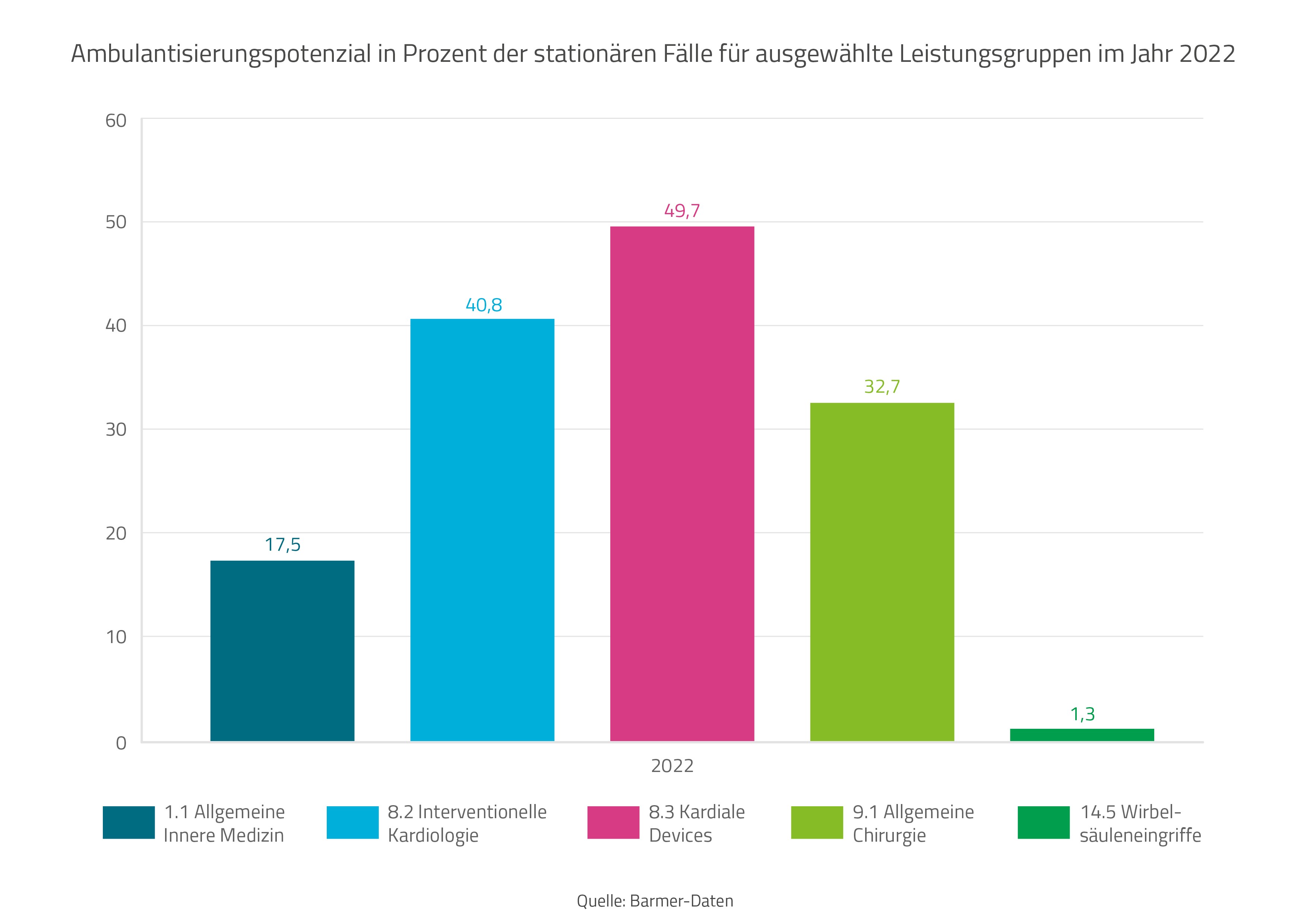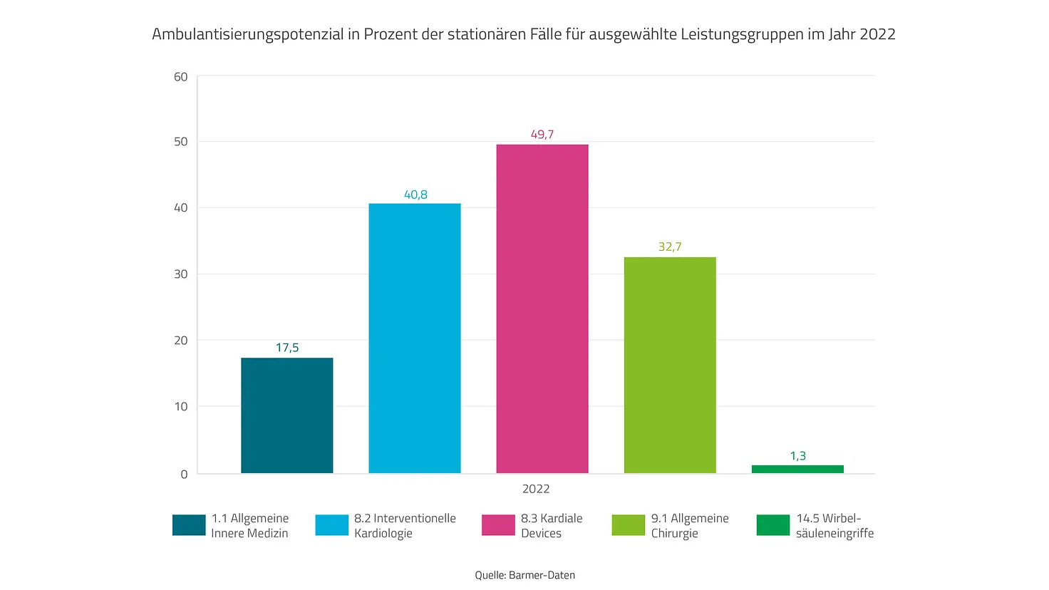 Das bifg sieht ein hohes Ambulantisierungspotenzial für eine Vielzahl von bislang stationär erbrachten Leistungen, dieses Potenzial müsse konsequent gehoben werden. Auf diese Weise könne dem demografisch bedingten Anstieg der stationären Fallzahlen entgegengewirkt und dieser sogar überkompensiert werden.