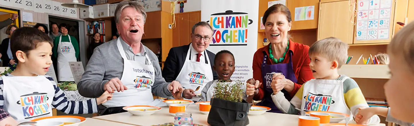 'Ich kann kochen!' ist eine bundesweite Ernährungsinitiative der Sarah Wiener Stiftung und der Barmer. Ziel ist es, Kita- und Grundschulkinder für eine vielseitige Ernährung zu begeistern. Praxisnahe Fortbildungen und digitale Lernangebote qualifizieren pädagogische Fach- und Lehrkräfte kostenfrei dafür, mit Kindern Lebensmittel zu entdecken und gemeinsam zu kochen. So werden Ernährungskompetenz gefördert und Krankheiten vorgebeugt. Seit dem Start im Jahr 2015 hat 'Ich kann kochen!' über eine Million Kinder erreicht. Die Qualität und Wirkung sind wissenschaftlich evaluiert und bestätigt. 'Ich kann kochen!' ist ein IN FORM-Projekt der Bundesregierung.