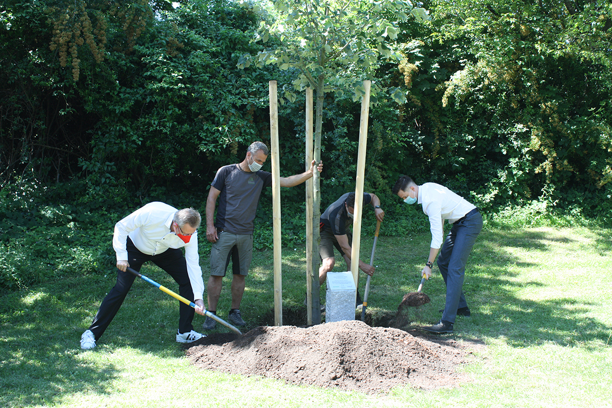 Freiburg, 16. Juni 2021 – Anlässlich des Stadtjubiläums 20/21 hatte die Barmer in Freiburg eine kostenlose Radfahraktion gestartet. Vom 19. April bis zum 13. Juni sollten die Freiburger im Rahmen von "Freiburg radelt mit der Barmer" 99.999 Kilometer erradeln. Dieses Ziel wurde übertroffen. "700 Radfahrerinnen und Radfahrer haben teilgenommen, gemeinsam haben sie eine Strecke von 287.675 Kilometern zurückgelegt. Das ist ein tolles Ergebnis", freut sich Jonas Zinser, Regionalgeschäftsführer der Barmer in Freiburg. Deshalb pflanzte er heute eine Linde am Spielplatz in der Faulerstraße, gemeinsam mit Georg und Christof Vonderstraß, Geschäftsführer der Baumschule Vonderstraß und Freiburgs Ersten Bürgermeister, Ulrich von Kirchbach. "Ich möchte allen Radfahrenden für Ihre Teilnahme danken und zu dem erstaunlichen Gesamtergebnis gratulieren! Mit dieser originellen Aktion hat die Barmer im Jubiläumsjahr der Green City ein starkes Zeichen für nachhaltige Mobilität und Klimaschutz gesetzt", so von Kirchbach. Die 15 Jahre alte Silberlinde hat die Baumschule Vonderstraß gestiftet. "Wir haben uns für eine Linde entschieden, weil diese gut als Einzelbaum wachsen kann. Außerdem ist die Linde seit jeher ein Baum, der zu besonderen Anlässen gepflanzt wurde", erklärt Georg Vonderstraß.