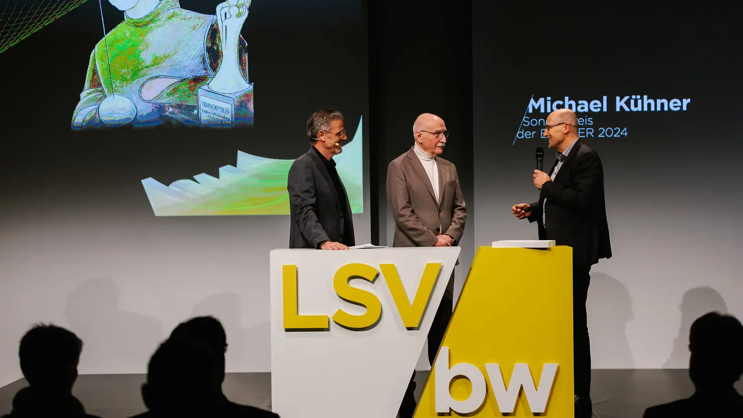 "Der Sonderpreis der Barmer ist unser Dank an Michael Kühner, weil er sich seit Jahrzehnten ehrenamtlich für das Florettfechten einsetzt. Und unser Preis ist hoffentlich auch ein Ansporn für andere, sich ebenfalls als Trainerin oder als Trainer zu engagieren. Denn Leute wie Michael Kühner bringen nicht nur ihren Sport voran. Sie bringen auch Menschen zusammen, und damit bereichern sie unsere Gesellschaft", sagt Barmer-Landesgeschäftsführer Winfried Plötze im Stuttgarter Porsche-Museum, als er den Preis an den sichtlich gerührten Michael Kühner übergibt. Ergriffen war der ehemalige Polizeihauptkommissar deshalb, weil zuvor Weggefährtinnen und -gefährten des PSV in einem Film erzählt hatten, warum Michael Kühner den Sonderpreis der Barmer mehr als verdient hat.