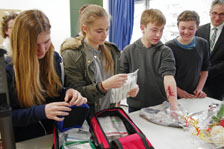 Seit 2005 führt der DRK Landesverband Baden-Württemberg in Kooperation mit der Barmer GEK Baden-Württemberg die Kampagne "Schulsanitätsdienst" durch. Zu der Erste-Hilfe-Ausbildung gehört nicht nur Theorie. In praktischen Übungen werden realistische Unfallsituationen nachgestellt, in denen die Erst-Helfer ihr neu erworbenes Wissen gleich anwenden können.