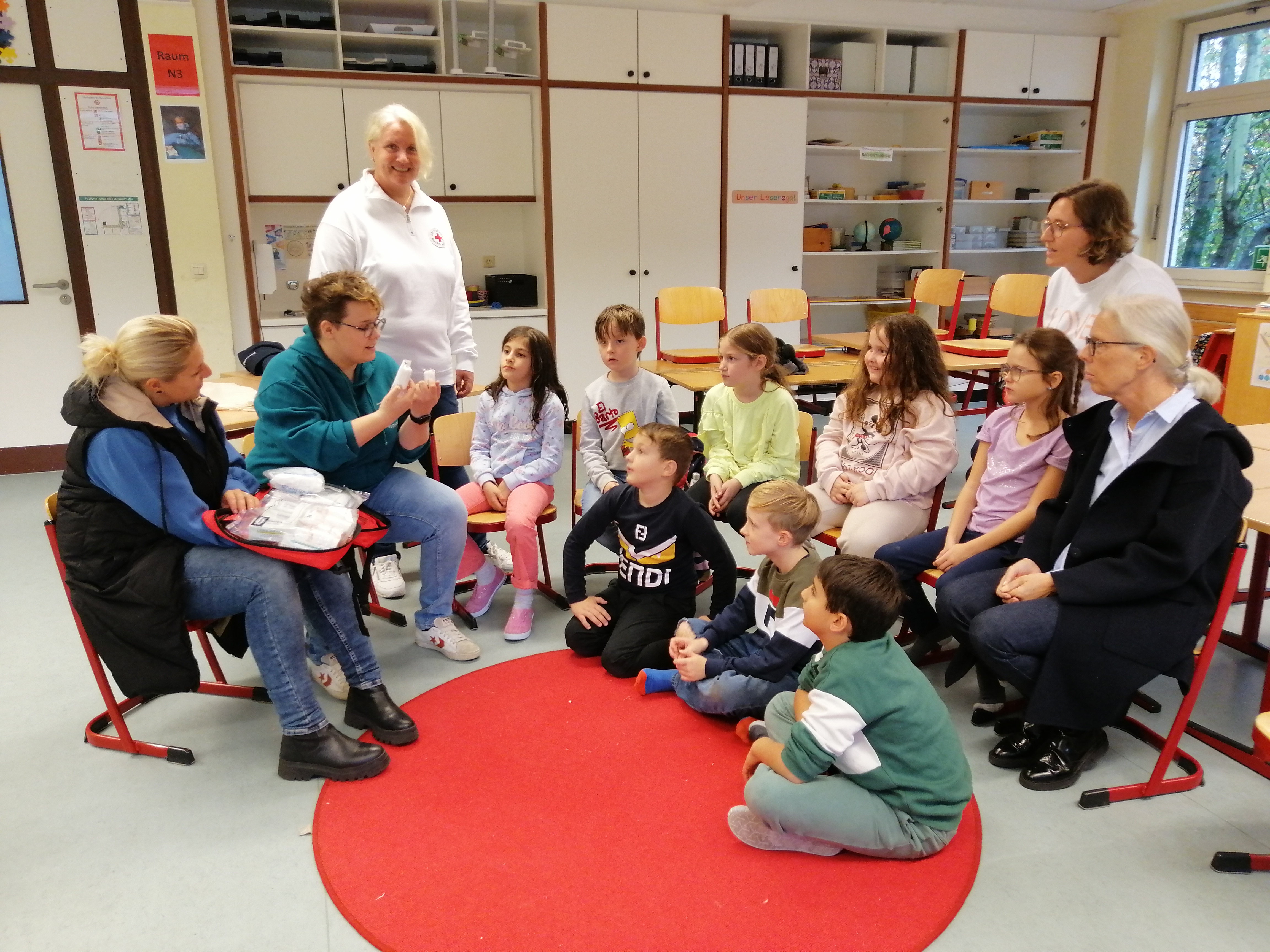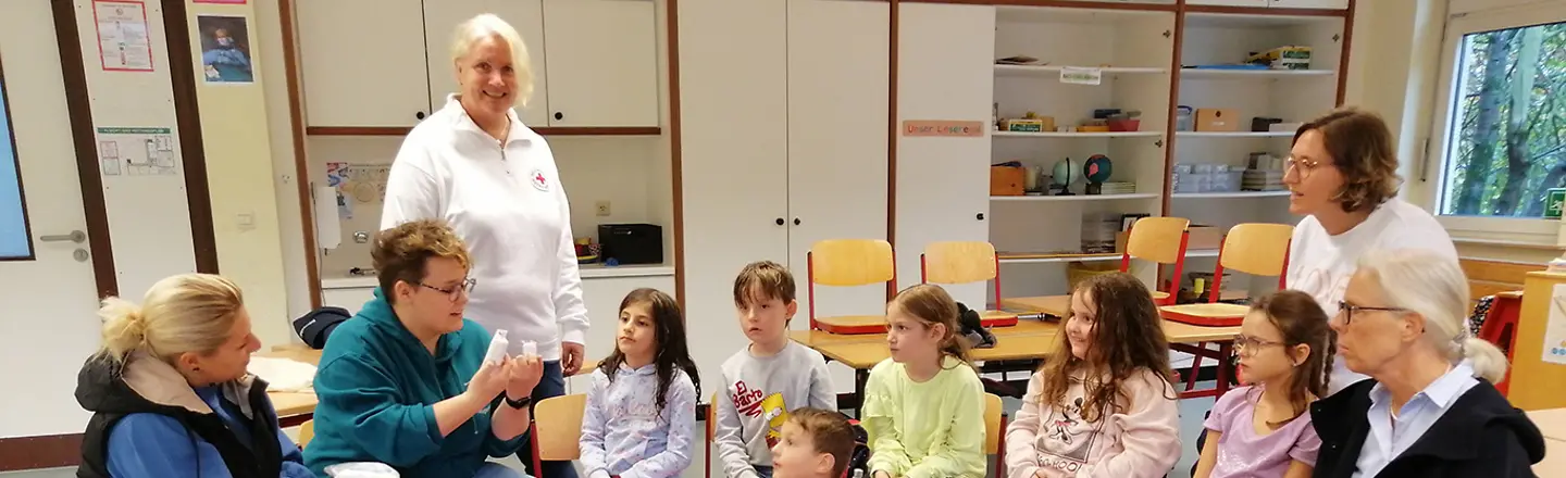 Dabei werden Kinder der dritten und vierten Klasse altersgerecht an die Erste Hilfe herangeführt. Im Rahmen ihrer Möglichkeiten unterstützen die Juniorhelferinnen und -helfer anschließend die Lehrkräfte, etwa beim Pausendienst. Und sie sorgen für eine wirksame Erste Hilfe an ihrer Schule.