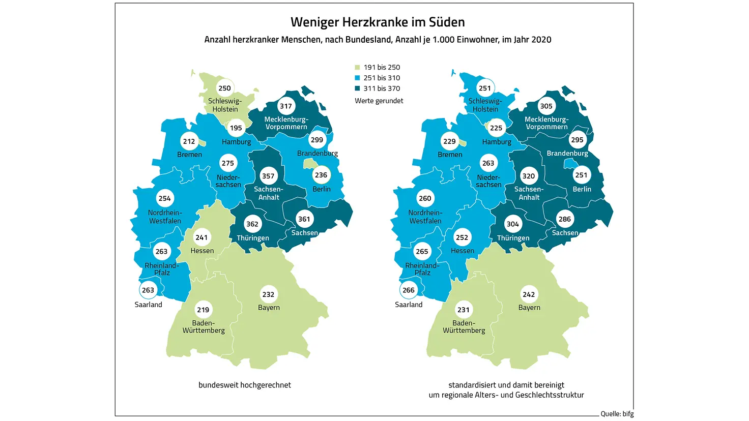 In Sachsen leben die meisten Herzkranken, und die Hamburger haben die gesündesten Herzen.