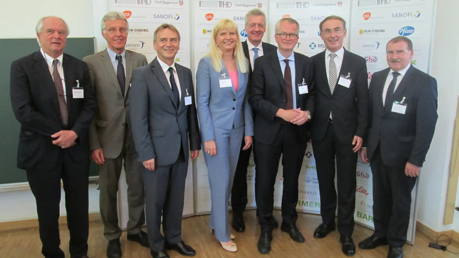 Von links: Dr. Wolfgang Krombholz, Vorstandsvorsitzender der KVB; Siegfried Hasenbein, Geschäftsführer der BKG; Prof. Dr. Horst Kunhardt, Vizepräsident TH Deggendorf; Dr. Claudia Wöhler, Landesgeschäftsführerin der Barmer Bayern, Prof. Dr. Ferdinand Gerlach Vorsitzender des Sachverständigenrates zur Begutachtung der Entwicklung im Gesundheitswesen; Joachim Becker, BMG; Prof. Dr. Christoph Straub, Vorstandsvorsitzender Barmer; Max Straubinger, MdB und Parlamentarischer Geschäftsführer der CSU-Landesgruppe.