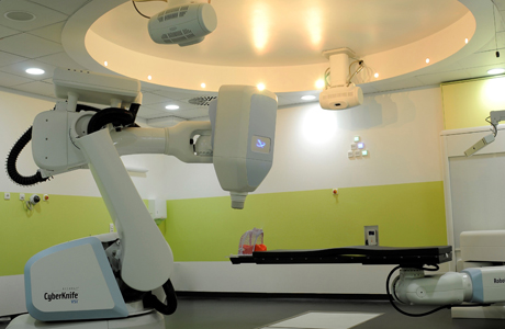 Bei der radiochirurgischen Behandlung mit dem Cyberknife wird der Therapiestrahl von einem Roboter geführt. So können selbst Atembewegungen des Patienten während der Behandlung ausgeglichen werden. Dies ist ein enormer Vorteil gegenüber herkömmlichen Bestrahlungstechniken, denn Lungen-, Leber- und Nierentumore können sich mit dem Ein- und Ausatmen mehrere Zentimeter bewegen. Fixierungsmaßnahmen zur Einschränkung der Atembewegung oder ein künstlicher Atemstillstand mittels Narkose werden so unnötig. Das Cyberknife arbeitet mit höchster Präzision im Submillimeterbereich, so dass umliegendes gesundes Gewebe nur wenig belastet wird, da keine Sicherheitssäume für Bewegungsunsicherheiten mitbestrahlt werden müssen. Dadurch wird das Risiko für Nebenwirkungen reduziert. In bestimmten Fällen können mit dem Einsatz der Cyberknife-Radiochirurgie auch risikoreiche Operationen vermieden werden. Im Gehirn kann die fokussierte, radiochirurgische Behandlung unter Umständen eine Ganzhirn-Bestrahlung vermeiden und so das Risiko für mittelfristige Gedächtnisstörungen minimieren.