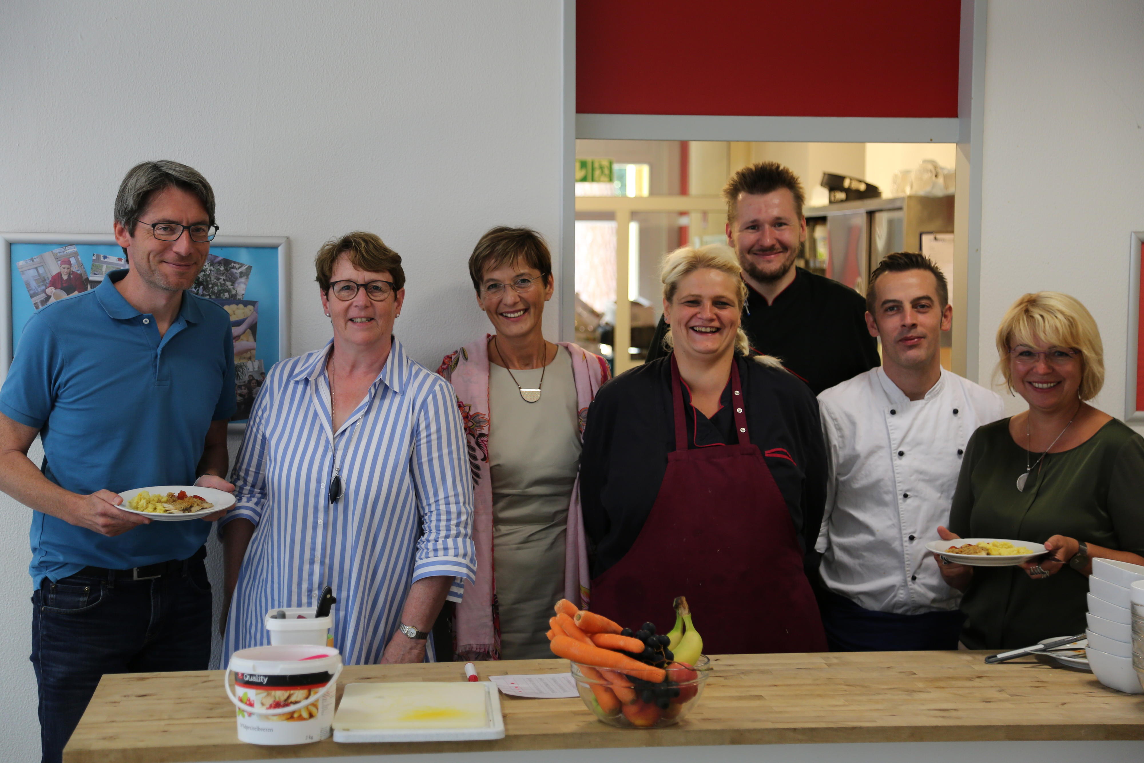 Zu Beginn des Modelprojekts analysierte sie gemeinsam mit den pädagogischen Fachkräften und dem Küchenteam die Mittagsverpflegung und Mahlzeitensituation und entwickelte Optimierungsmaßnahme. Von den ersten Ergebnissen konnte sich Swen Schulz beim Probeessen und der Besichtigung der Mensa überzeugen. Neben dem Hort der Carl-Schurz-Grundschule nehmen auch die Horte der Askanier-Grundschule und der katholischen Schule Bernhard-Lichtenberg an der Initiative ü6 teil. Im Gespräch mit Swen Schulz wies Gabriela Leyh, Landesgeschäftsführerin der Barmer, darauf hin, dass viele Horte räumlich nicht in der Lage seien, praktische Ernährungsbildung umzusetzen. Sie begrüßte die vom Senat finanzierte Schulausbauoffensive in Höhe von 5,5 Milliarden Euro und forderte, von diesen Mitteln auch Koch-Werkstätten in den Horten einzurichten.