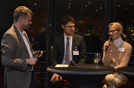 Moderator Jörn Straehler-Pohl (l.) befragt Sibylle Stauch-Eckmann von der Helios-Endo-Klinik Hamburg. Gesundheitsökonom Professor Doktor Jonas Schreyögg (M.) von der Universität Hamburg hört interessiert zu. Foto: Barmer GEK Hamburg