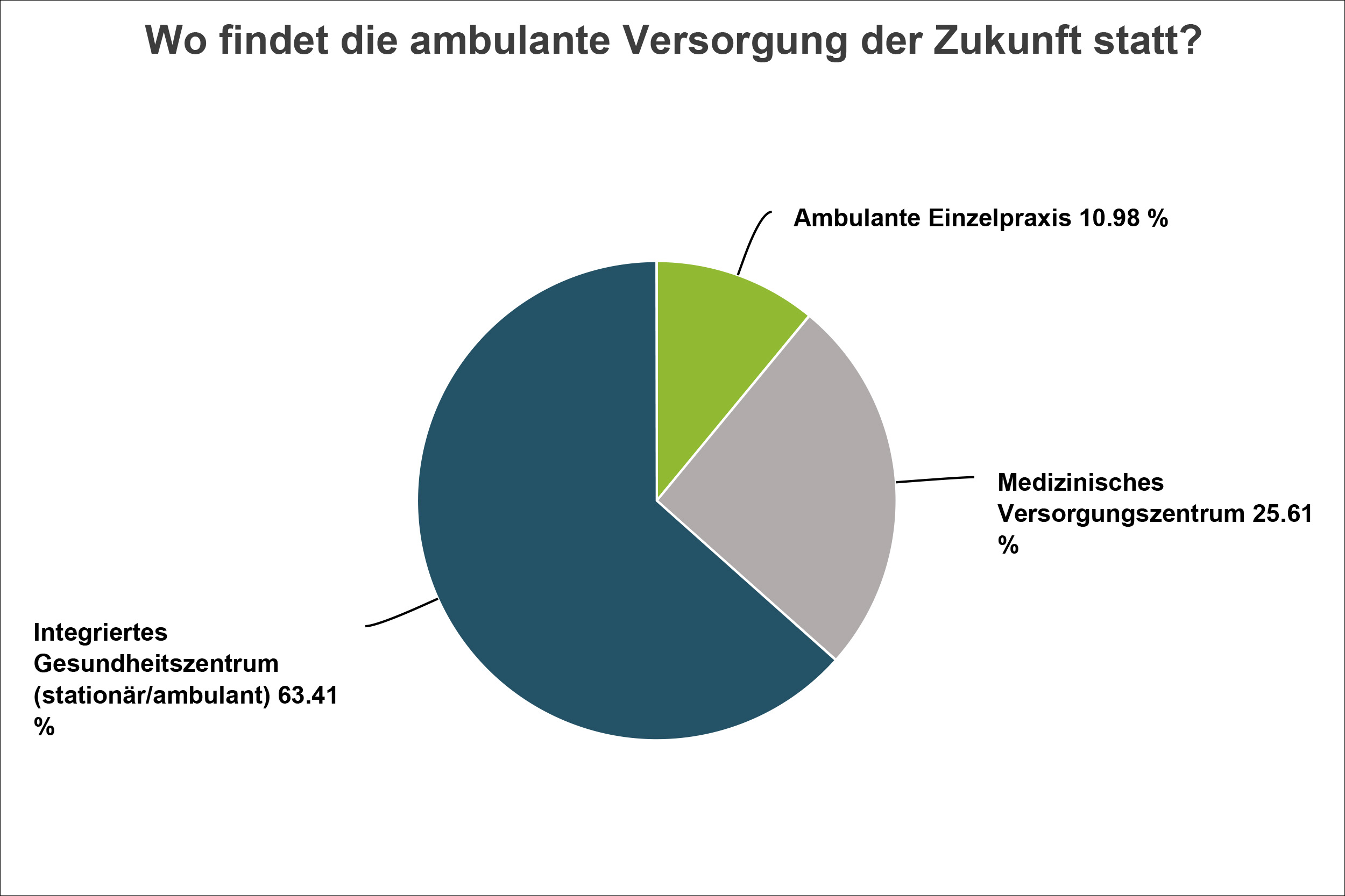 In einer zweiten Zuschauerumfrage war die Mehrzahl (63,41 Prozent) der Meinung, dass in der zukünftigen ambulanten Versorgung die Integrierten Gesundheitszentren eine zunehmend wichtigere Rolle spielen werden.