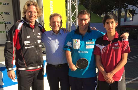 Jochen Wollmert (2.von rechts), Goldmedaillengewinner bei den Paralympischen Spielen, ist einer der bekanntesten Barmer GEK Botschafter für den Tischtennissport. Foto: Jo Herrmann
