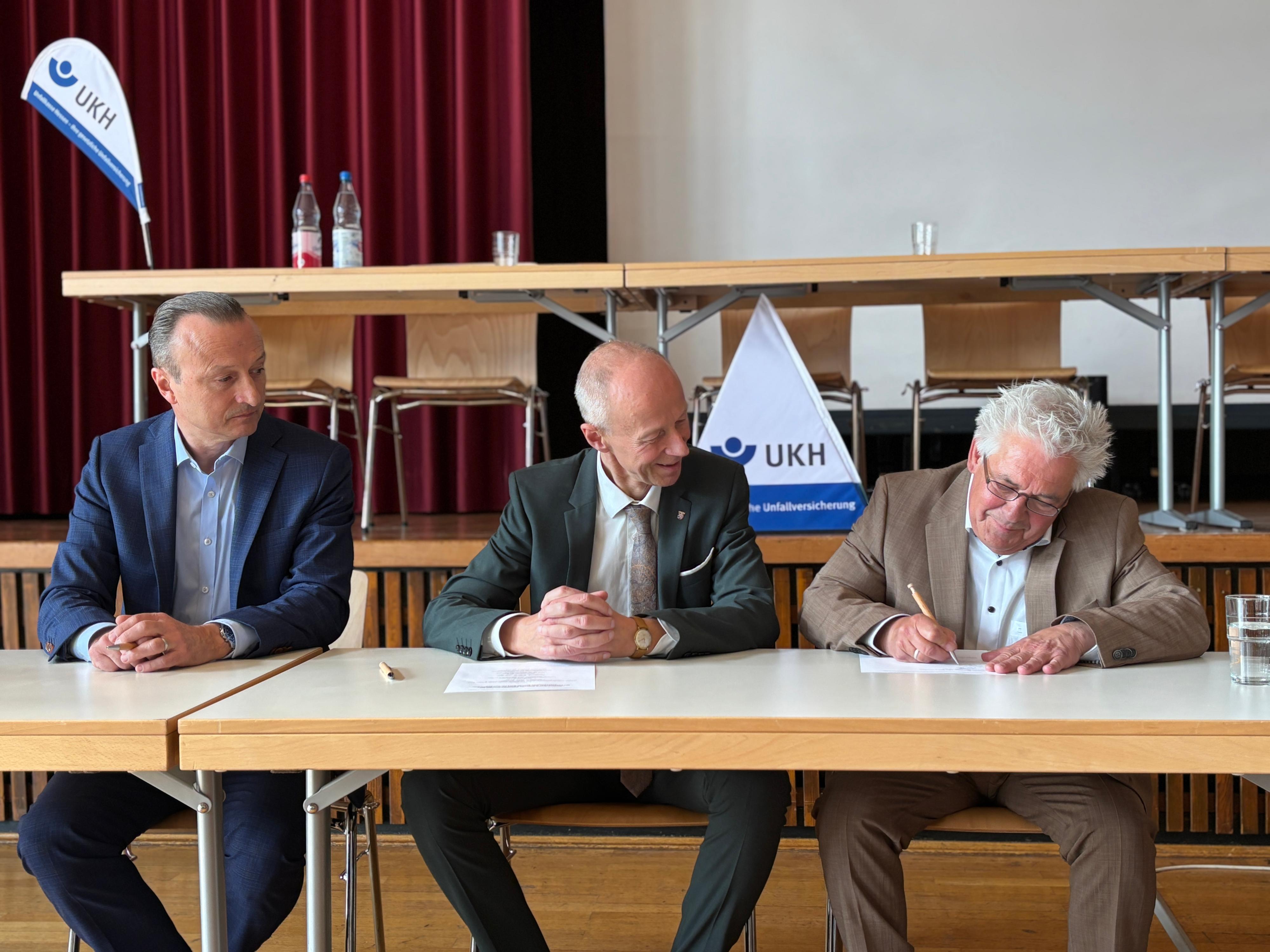 V.l.n.r. Martin Till (Landeschef der BARMER in Hessen), Armin Schwarz (Hessischer Minister für Kultus, Bildung und Chancen) und Michael Sauer (Geschäftsführer der Unfallkasse Hessen)
