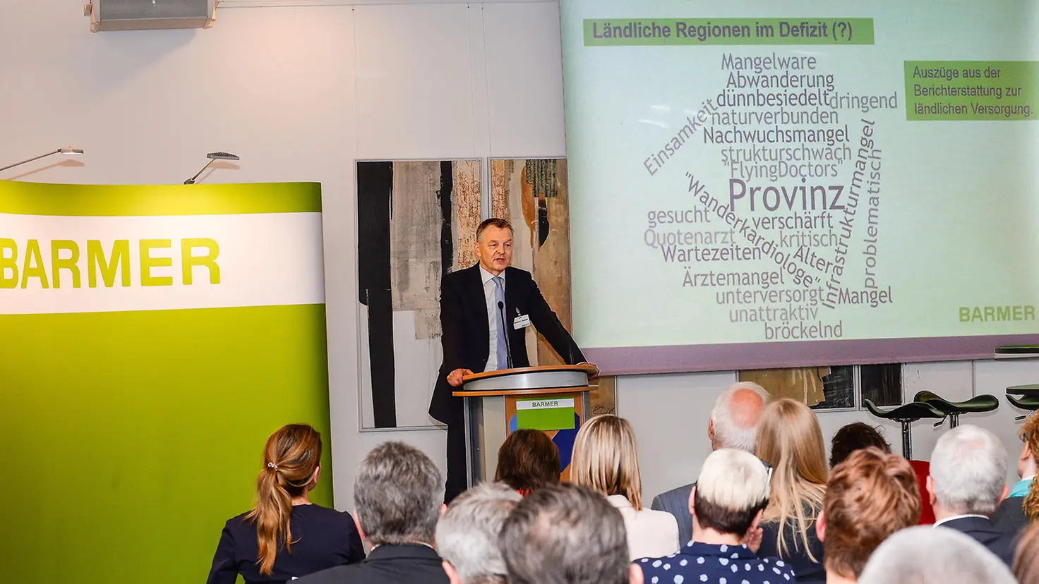 Norbert Sudhoff, Landesgeschäftsführer der Barmer Hessen, eröffnete die Veranstaltung vor diesem Hintergrund mit einem mahnenden Appell. Die Wortwahl in der aktuellen Berichterstattung erzeuge ein unverantwortlich negatives Bild ländlicher Regionen, das wahlweise eher an das 17. Jahrhundert oder das australische Outback erinnere. An den Grenzen der hessischen Speckgürtel erwarte uns jedoch keine Provinz; weder in den Köpfen noch im allgemeinen Leben.