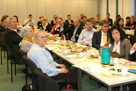 Ab diesem Jahr sollen die Krankenkassen insgesamt sieben Euro je Versicherten für Gesundheitsvorsorge ausgeben. Ein wesentlicher Schwerpunkt ist dabei die Prävention in Betrieben. Simone Borchardt zeigte durch praktische Beispiele auf, wie gerade auch kleinere und mittlere Unternehmen betriebliche Gesundheitsförderung mit Hilfe der Barmer GEK umsetzen können. Die Unternehmer Burkhardt Jerratsch von BJ Bau GmbH und David Ulbrich von Teamgeist Medien GbR, berichteten über ihre praktischen Erfahrungen in der Gesundheitsförderung.