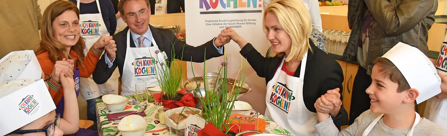 Bundesfamilienministerin Manuela Schwesig begrüßt die Initiative: "Es macht Kindern Spaß, selbst zu kochen und sie lernen dabei, was es heißt, sich bewusst und gesund zu ernähren. Und es macht ihnen besonders viel Spaß, zusammen zu kochen. Die Initiative Ich kann kochen! von Sarah Wiener und der Barmer GEK bringt diese Idee in die Schulen und Kitas. Das ist eine gute Sache, die ich gern unterstütze", sagt Schwesig.