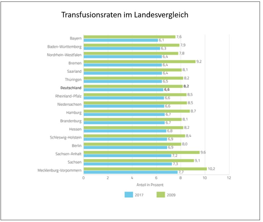 Schwerin, 20. Februar 2020 – In Mecklenburg-Vorpommern erhalten knapp acht Prozent der Patientinnen und Patienten bei einer Operation eine Bluttransfusion. In keinem anderen Bundesland ist die Transfusionsrate so hoch wie im Nordosten. Das ist ein Ergebnis des aktuellen Barmer Krankenhausreports.