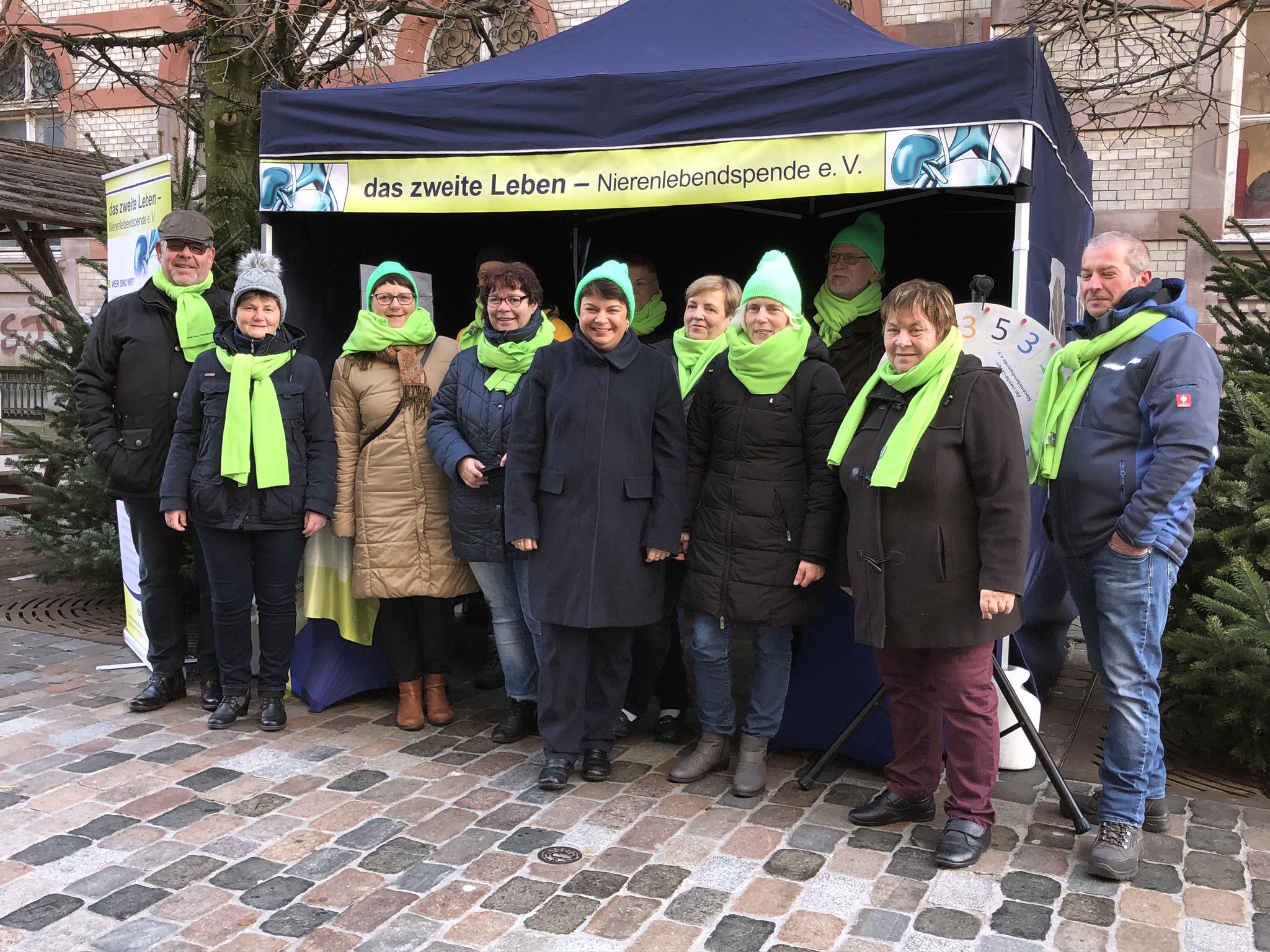 Alle Mitglieder des Vereins sind selbst Spender oder Empfänger von Nieren. "Wir alle haben die Zeit durchlebt, in der es unseren Kindern, Ehepartnern oder nahestehenden Familienangehörigen immer schlechter ging, sie eine neue Niere benötigten. Durch unsere ganz bewusste Entscheidung zur Lebendnierenspende hatten wir die Möglichkeit, das Geschenk des Lebens zu machen. Es ist sehr schön, wenn man sieht wie ein geliebter Mensch wieder anfängt zu leben“, schildern die Vereinsvorstände Birgit Lischke und Brunhilde Ernst die Erfahrungen der Betroffenen. Noch immer stehen viele Menschen auf der Warteliste für ein Spenderorgan. Viele warten vergebens. Im Gespräch mit den Weihnachtsmarktbesuchern konnten Berührungsängste zum Thema Organspende abgebaut und Fragen beantwortet werden.