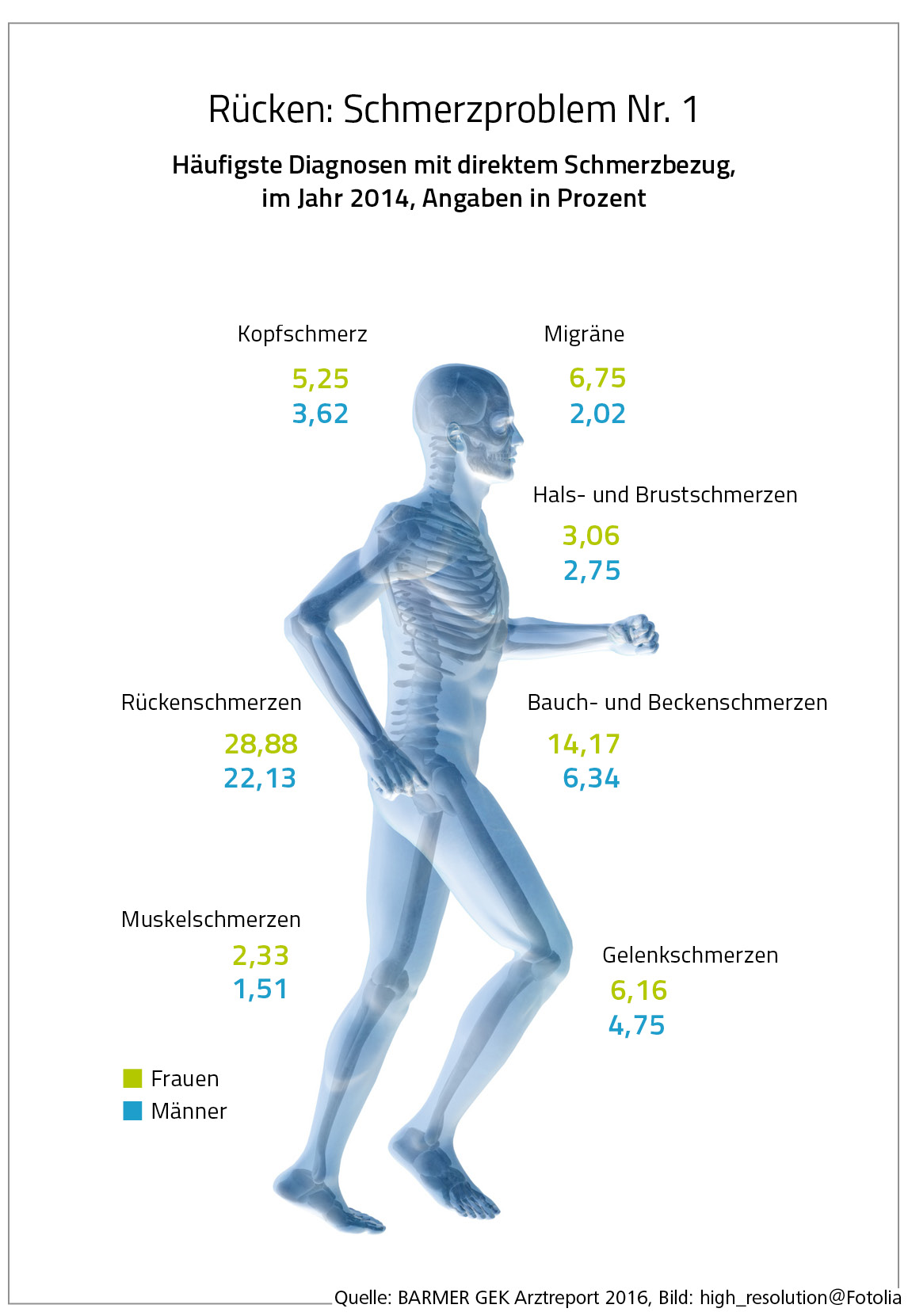 In Deutschland leiden etwa 27 Prozent der Bevölkerung unter chronischen Schmerzen. Trotz wichtiger Fortschritte gibt es deutlichen Verbesserungsbedarf in der Versorgung der Betroffenen, dies hat bereits 2016 der Barmer Arztreport deutlich gemacht. Seit 2018 fördert die Barmer eine interdisziplinäre Zusammenarbeit, um die Chronifizierung von Schmerzen zu verhindern.