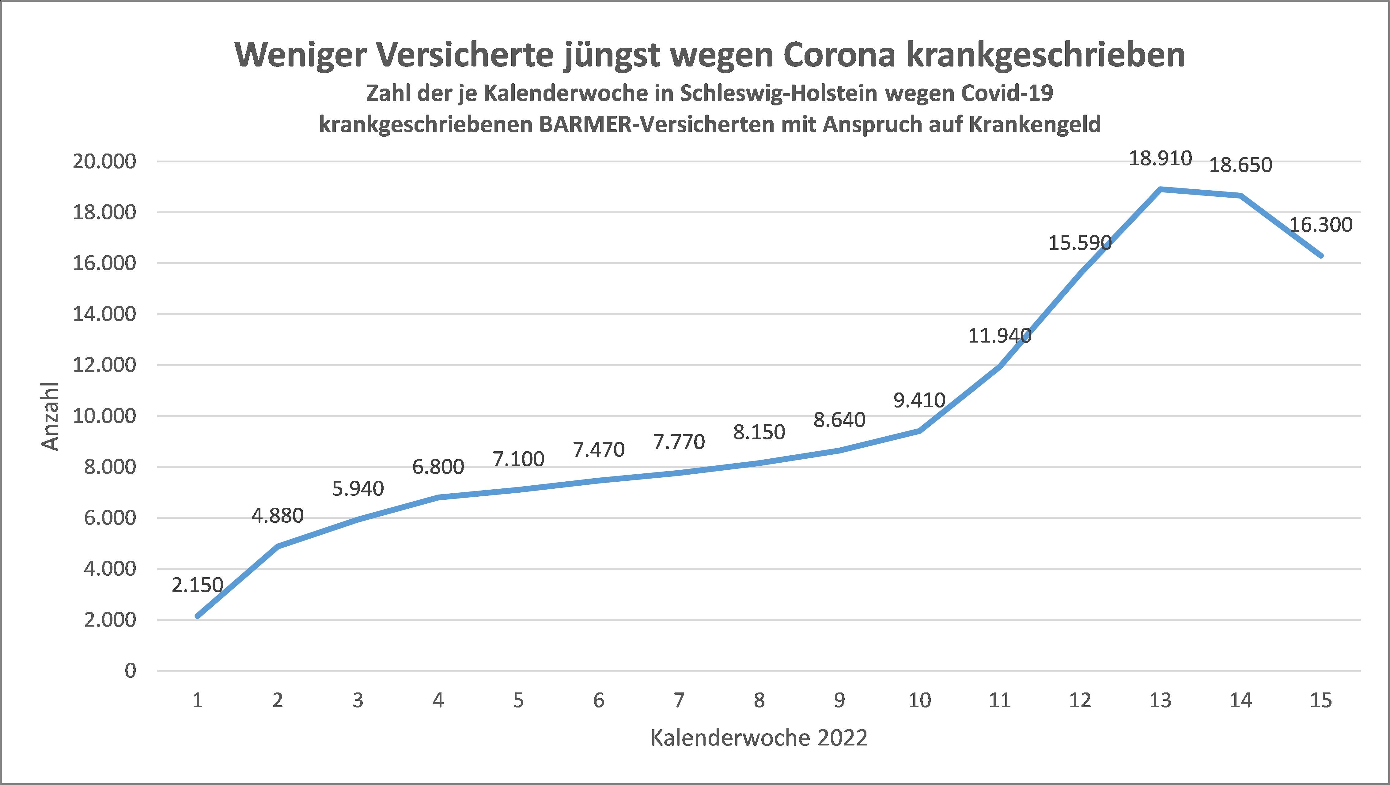 Düsseldorf, 10. Mai 2022 – Erstmals in diesem Jahr ist die Zahl der Corona-bedingten Krankschreibungen in Nordrhein-Westfalen deutlich rückläufig. Das geht aus einer aktuellen Auswertung des Barmer Instituts für Gesundheitssystemforschung (bifg) unter Barmer-versicherten Erwerbstätigen hervor. Demnach waren in NRW in der Woche vom 10. bis 16. April rund 12.700 Barmer-Versicherte mit Anspruch auf Krankengeld wegen einer Covid-19-Infektion arbeitsunfähig (bundesweit: 63.500 Versicherte). Zwei Wochen zuvor waren es auf dem Höhepunkt noch etwa 15.400 Betroffene (bundesweit: 84.900). Das entspricht einem Rückgang um rund 18 Prozent (bundesweit: 25 Prozent). Seit Beginn des Jahres war die Zahl der Krankschreibungen, abgesehen von einem minimalen Rückgang Anfang März, stets gestiegen.