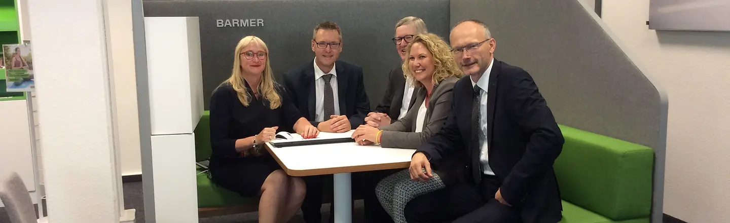 Neun Mitarbeiter sind in der 225 Quadratmeter großen Geschäftsstelle beschäftigt, deren Räumlichkeiten sich im Erdgeschoss in der Nähe einer Bushaltestelle befinden. „Das nun verwirklichte Raumkonzept berücksichtigt noch stärker Diskretion und Datenschutz als vorher“, betonte Barmer Regionalgeschäftsführer Göhl. Er verwies auf zwei Beratungsboxen mit Sitzecken, PC-Bildschirmen und Trennwänden als Sichtschutz, die Platz für längere Gespräche böten: „Die Trennwände schaffen eine vertrauensvolle Atmosphäre. Die Anordnung der Sitze ermöglicht eine offene Kommunikation.“ Zusätzlich gebe es einen schalldichten Beratungsraum und für kleinere Anliegen der Versicherten einen Steharbeitsplatz am Eingang.