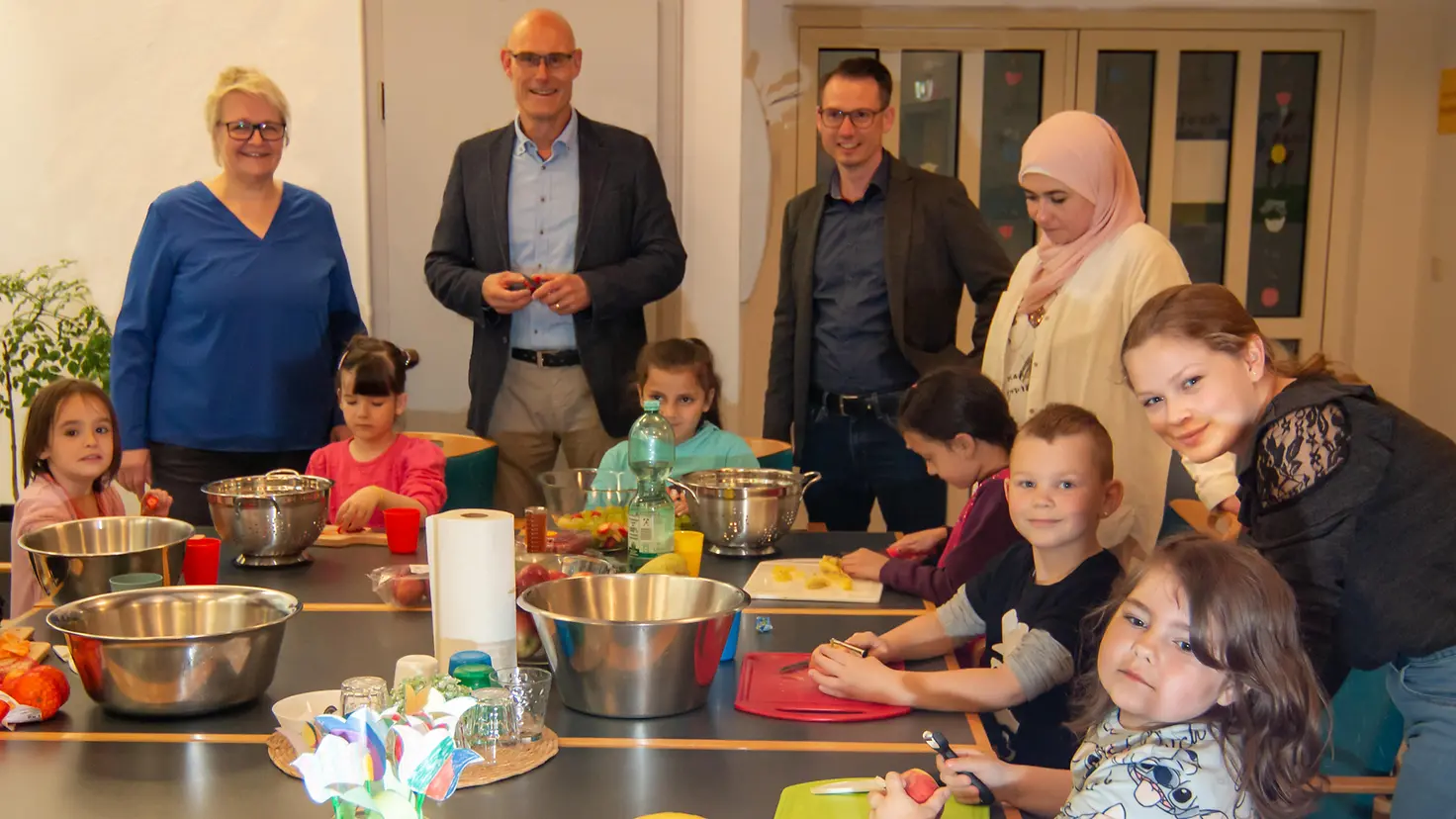 Mit der Anschubförderung der Barmer sollen die Inhalte von Ich kann kochen! nachhaltig in der Einrichtung etabliert werden. „Immer weniger Kinder lernen, wie sie sich gesund und ausgewogen ernähren. Wir möchten Kitas und Grundschulen mit der Initiative Ich kann kochen! ermuntern, selbst aktiv zu werden“, sagte Barmer-Regionalgeschäftsführer Hansjörg Lambrix beim Besuch einer Kochaktion im Horeb-Treff mit einer Mutter-Kind-Gruppe, die durch die Förderung unterstützt wurde. Bei der kindgerechten Kochaktion stand die Zubereitung eines Obstsalats auf dem Speiseplan. Lambrix betonte: „Bei Ich kann kochen! geht darum, mit den Mädchen und Jungen Speisen zuzubereiten und dabei Ernährungswissen und Küchentechniken zu vermitteln.“ Ziel sei, Kinder für das Kochen und eine ausgewogene Ernährung dauerhaft zu begeistern.