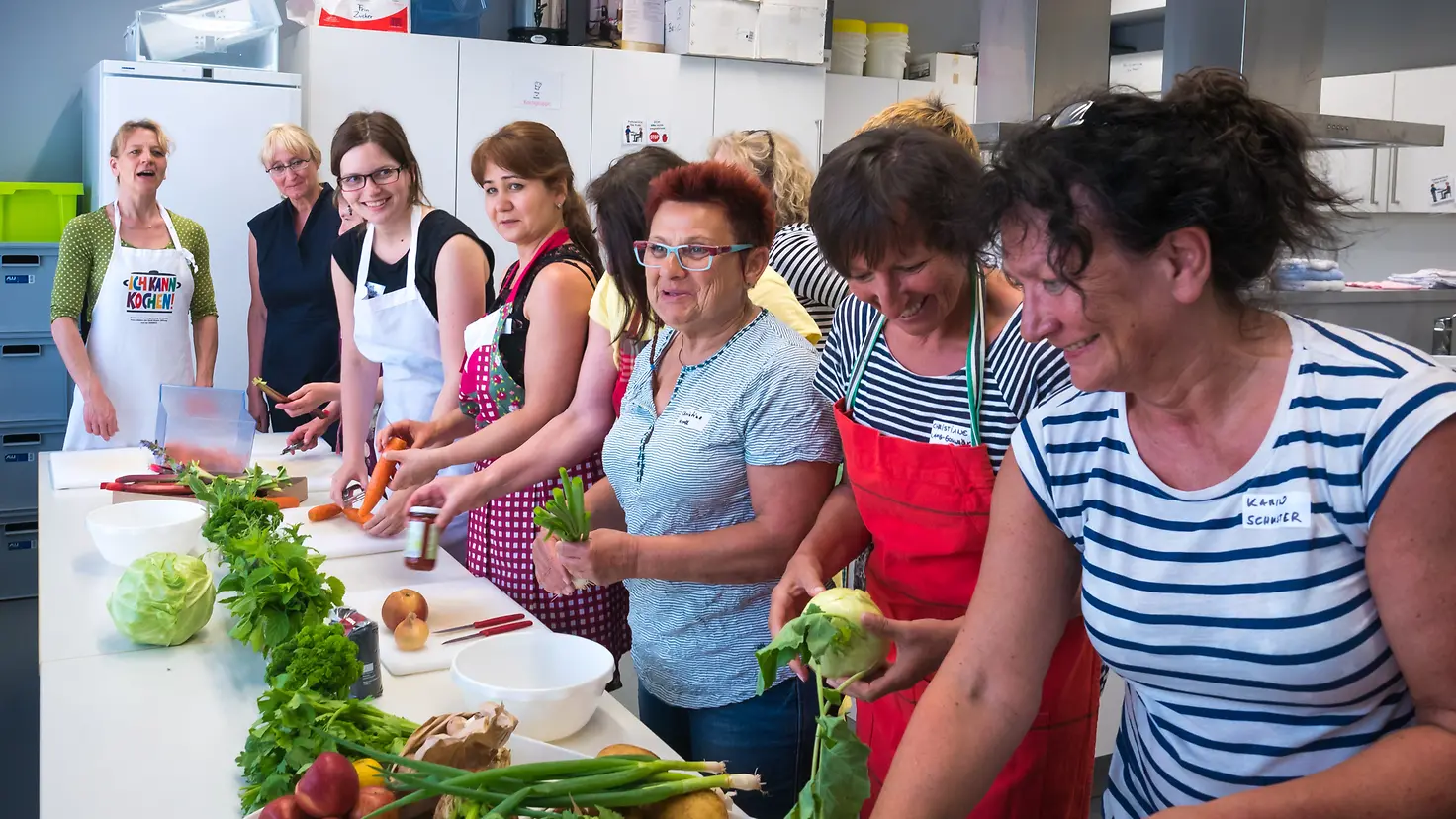 Eingeübt wurde das neu erworbene Wissen in der Schulküche, wo die Lehrerinnen und Erzieherinnen saisonale Gerichte wie Frühlingssalat, Gemüseschnecken und Kartoffel-Möhren-Stampf zubereiteten. Trainerin Fromme sagte: „Wir müssen Kinder alltagsnah und frühzeitig für eine vielseitige Ernährung begeistern. Der Griff zu Schneidebrett und Kochlöffel macht Essen für Kinder zum Erlebnis.“ Das gemeinsame Kochen vermittle praxisnahes Ernährungswissen und fördere wirkungsvoll die Gesundheit der Kinder. Das neu erworbene Wissen lasse sich von pädagogischen Fachkräften bestens einsetzen, um integriert in den Kita-Alltag, den Unterricht, in Arbeitsgruppen oder als Projekt Koch- und Ernährungskurse anzubieten.