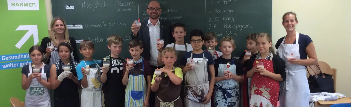 Schulleiterin Pia Block sowie die Projektleiterinnen Anne Niederländer und Jana Bähr betonten: „Wir möchten allen Kindern in unserer Schule eine gesunde Ernährung, den Umgang mit Lebensmitteln und die eigenständige Zubereitung von Mahlzeiten näher bringen. Der Ganztagsschulbetrieb ermöglicht es uns, vor allem solche Kinder zu erreichen, die damit in ihrem Alltag zu wenig in Berührung kommen.“ Die Koch-AG habe im laufenden Halbjahr begonnen und das Interesse sowie die Motivation der Kinder seien hoch, diese auch weiterzuführen.
