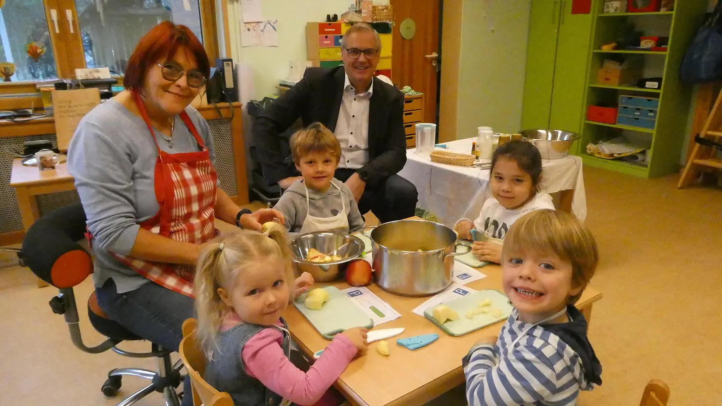 Mit der Anschubförderung der Barmer sollen die Inhalte von Ich kann kochen! nachhaltig in der Einrichtung etabliert werden. „Immer weniger Kinder lernen, wie sie sich gesund und ausgewogen ernähren. Wir möchten Kitas und Grundschulen mit der Initiative Ich kann kochen! ermuntern, selbst aktiv zu werden“, sagte Barmer-Geschäftsführer Jörg Kalkstein beim Besuch einer Kochaktion in der Kindertagesstätte, die durch die Förderung unterstützt wurde. Bei der kindgerechten Kochaktion stand die Zubereitung eines Apfelmus-Quark-Desserts auf dem Speiseplan. Kalkstein betonte: „Bei Ich kann kochen! geht es darum, mit den Mädchen und Jungen Speisen zuzubereiten und dabei Ernährungswissen und Küchentechniken zu vermitteln.“ Ziel sei, Kinder für das Kochen und eine ausgewogene Ernährung dauerhaft zu begeistern.