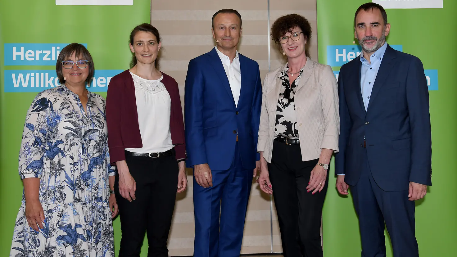 Diskutierten Chancen der Datennutzung im Gesundheitswesen beim Barmer-Länderforum (v.l.n.r.): Dunja Kleis (Barmer), Dr. Verena Kurz (Bundesministerium für Gesundheit), Martin Till (Barmer), Antje Swietlik (klinisches Krebsregister Rheinland-Pfalz) und Dr. Michael von Wagner (Universitätsklinikum Frankfurt). Foto: Barmer/K. Schäfer